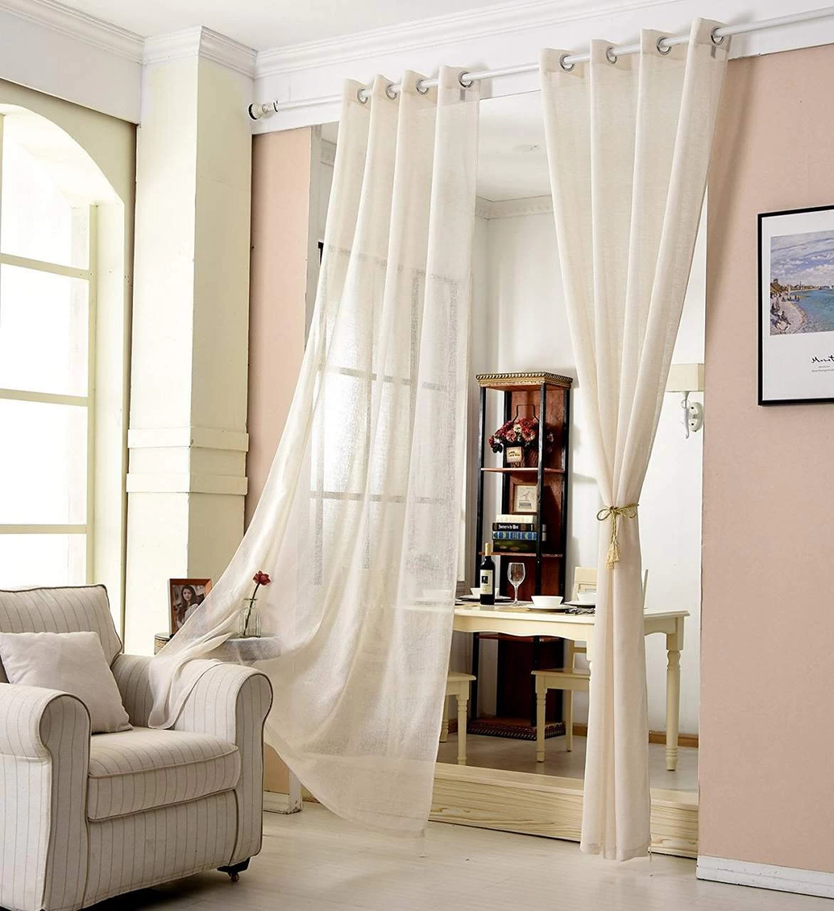 - Der Stoff hat transparentes weichfliesendes Leinenoptik-Gewebe, mit den Vorhängen können Sie Ihre Fenster dekorativ und farbenfroh gestalten und haben schnell einen neuen Look in Ihrem Zimmer.
