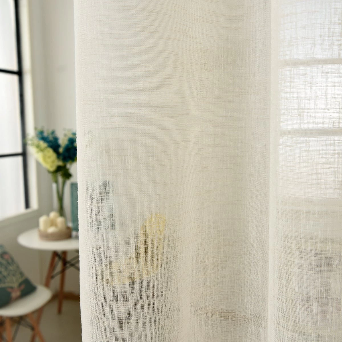 - Material: 100% Polyster, hochwertige transparente Leinenoptik Voile