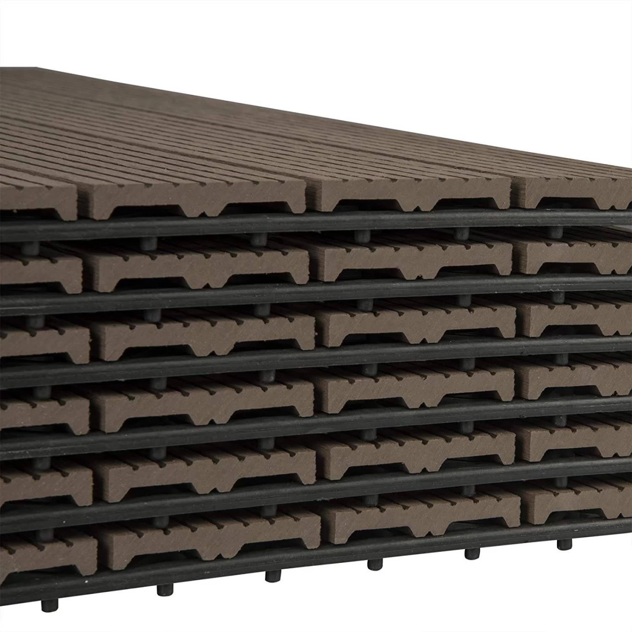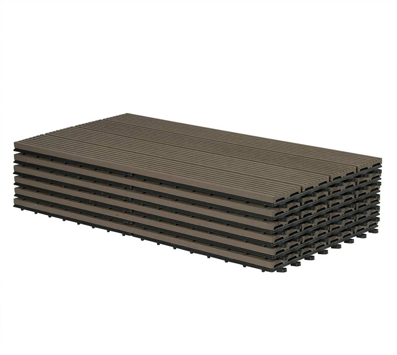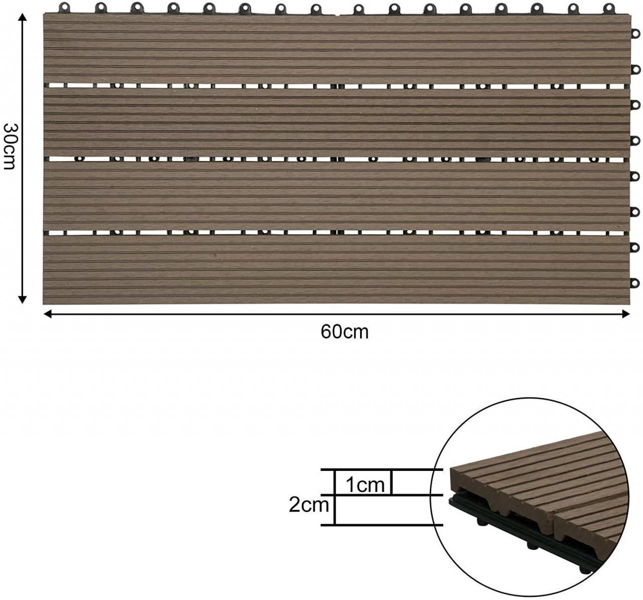 - Mehre Kombination: jede in 30x60cm und 12 Stücke, Die Fliesen können mit anderen Farben der Fliesen kombiniert werden. Außerdem können die WPC Terrassenfliesen mit Stein-Klickfliesen oder Rasenfließen kombiniert werden