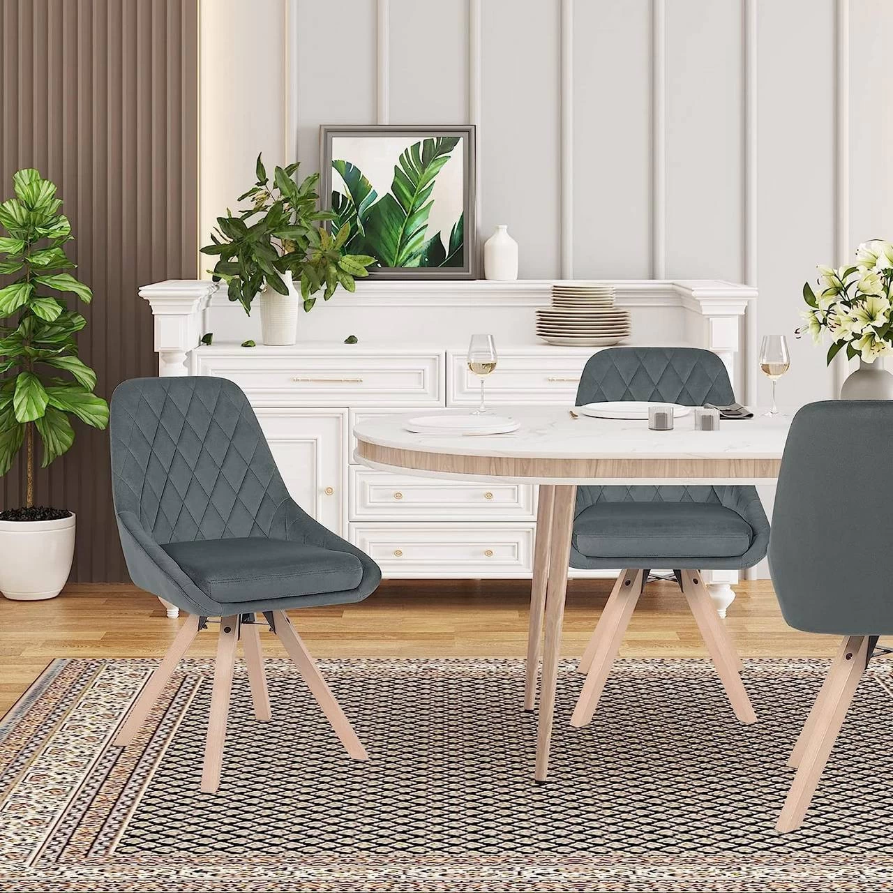 - 360° DREHSTUHL: Dieser Esszimmerstuhl lässt sich um 360 Grad drehen, was große Bequemlichkeit für Ihr Alltagsleben und Arbeiten bietet. Das Design ohne Rolle erhöht in gewissem Maße die Bedienungssicherheit.