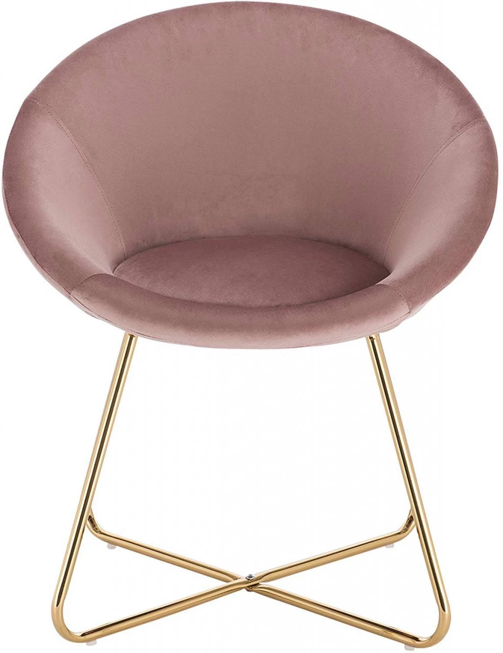 Weicher Stuhlsitz: Der Esszimmerstuhl mit geschwungener Rückenlehne und schrägen Armlehnen ist mit hochdichtem und hochelastischem Schaumstoff gepolstert und mit Samt bezogen, was den Sitz sehr bequem macht.