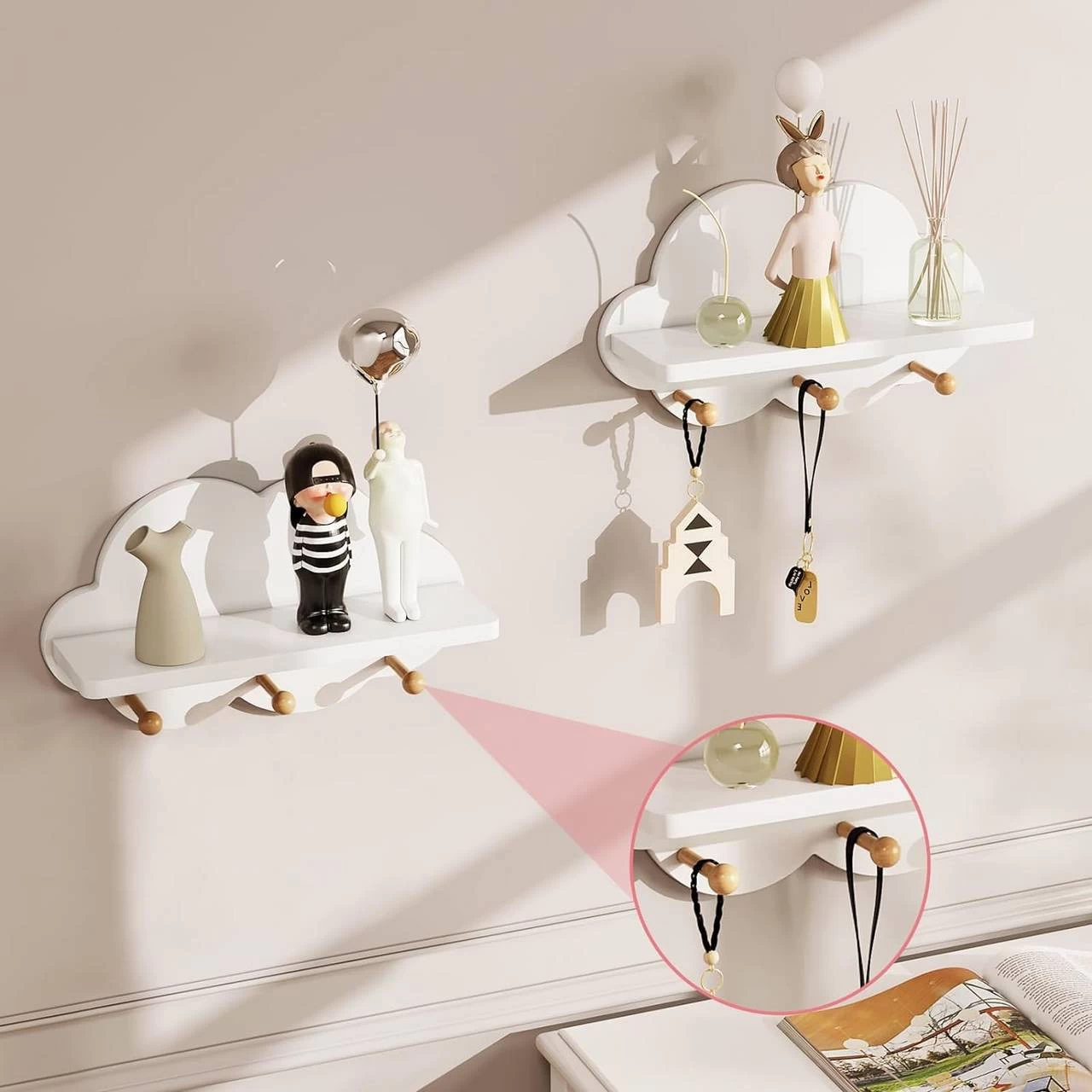 - PRÄSENTIEREN MACHT SPASS: Das Wolkenregal nimmt keinen Bodenplatz ein, schafft aber Stauraum an der Wand, sodass Kinder die Figuren, Topfpflanzen und Spielzeug selbst organisieren können, was ihre Neugier weckt und Organisationsfähigkeiten entwickelt