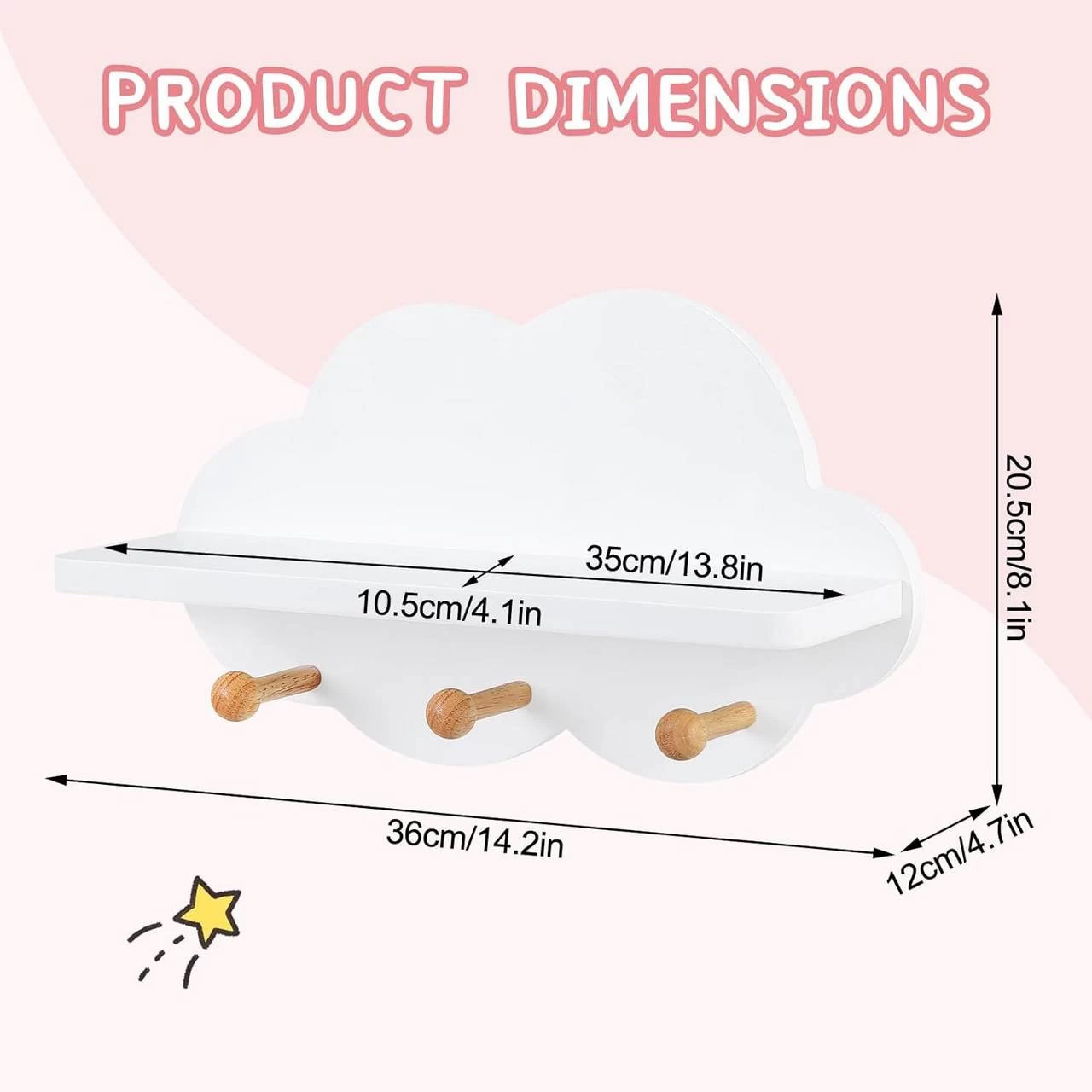 - WIE SÜSS DAS WOLKENREGAL IST! Es ist ein Aufbewahrungsregal, auch ein Wohndekor. Das besondere und bezaubernde Wolkendesign lässt Ihre schlichte Wand lebendig werden und bringt mehr Spaß in Ihr Leben mit Ihren Kindern. Gesamtgröße: 36x12x20,5 cm