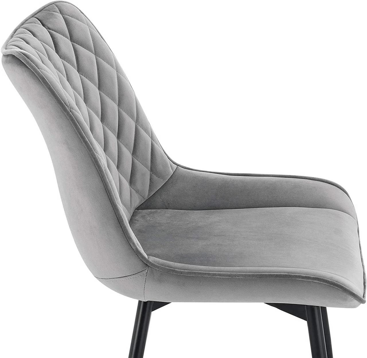 - Robuster Esszimmerstuhl: Der Stuhl (2er-Set) verfügt über eine strapazierfähige Samt-Oberfläche, eine hochverdichtete Schaumstoffpolsterung und robuste schwarze Metallbeine. All dies trägt zu einer hohen Stabilität und Langlebigkeit bei. Maximale statische Belastbarkeit: 120 kg.