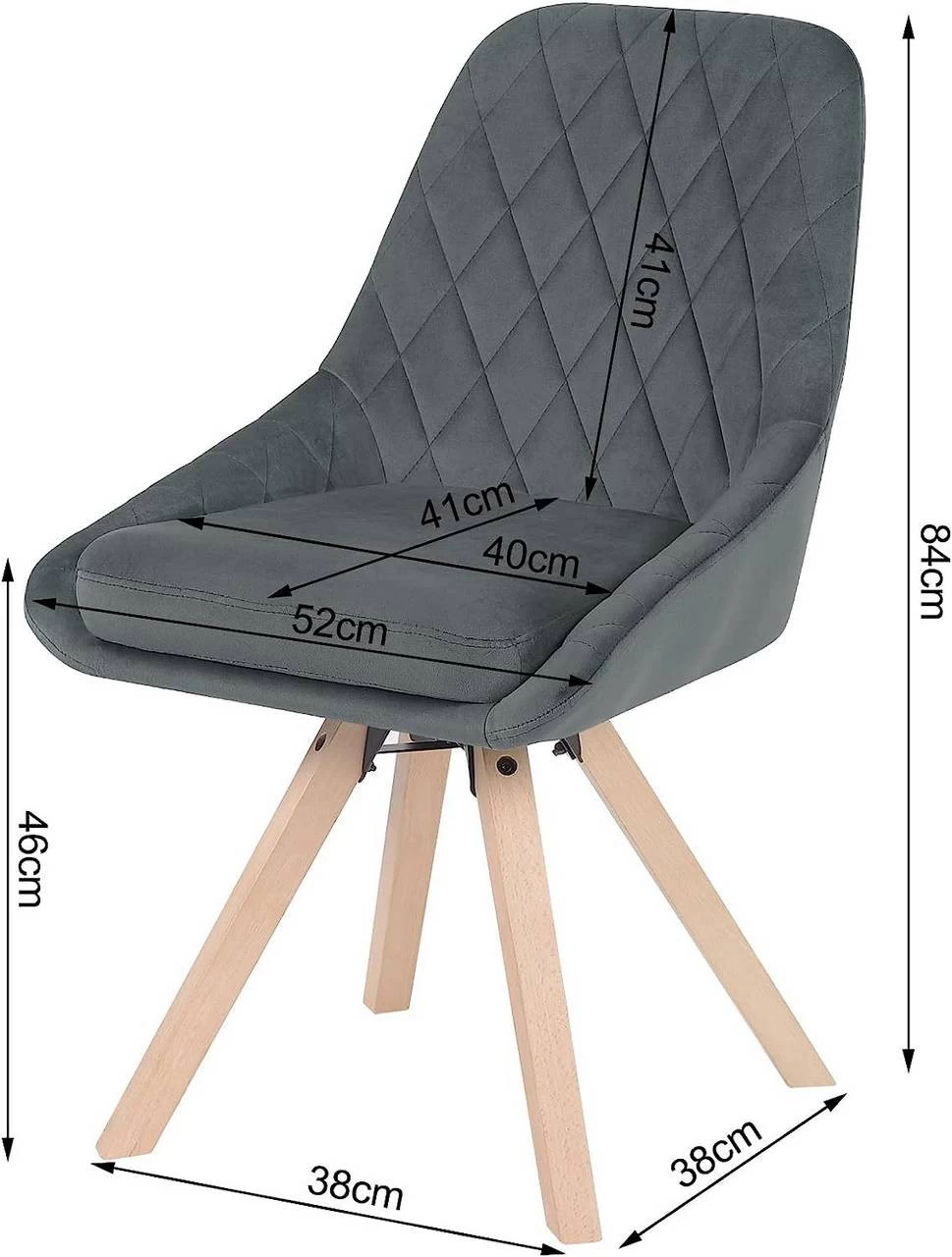 - Gesamtbreite: 52 cm; Tiefe der Sitzfläche: 41 cm