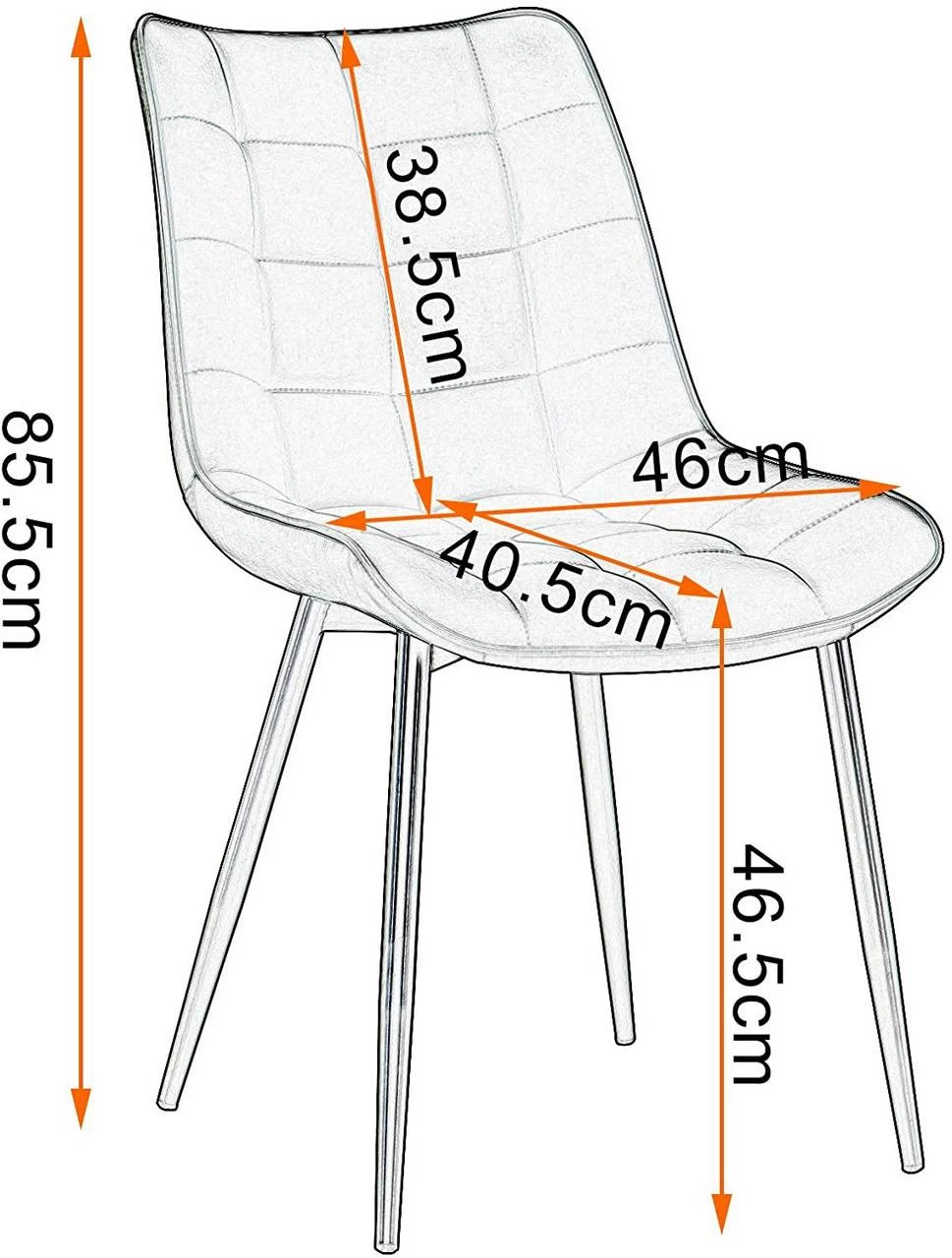 - Leicht zu montierende Polsterstuhl: Das Set wird zerlegt geliefert. Mit der übersichtlichen Anleitung ist die Montage im Handumdrehen erledigt. Alle Zubehörteile sind im Lieferumfang enthalten. Stuhlmaße – Gesamthöhe: 85,5 cm; Sitzhöhe: 46,5 cm; Sitzfläche: 46 x 40,5 cm (B x T); Rückenlehnenhöhe: 38,5 cm. (Für genauere Maße können Sie sich das Bild mit den Maßen ansehen).