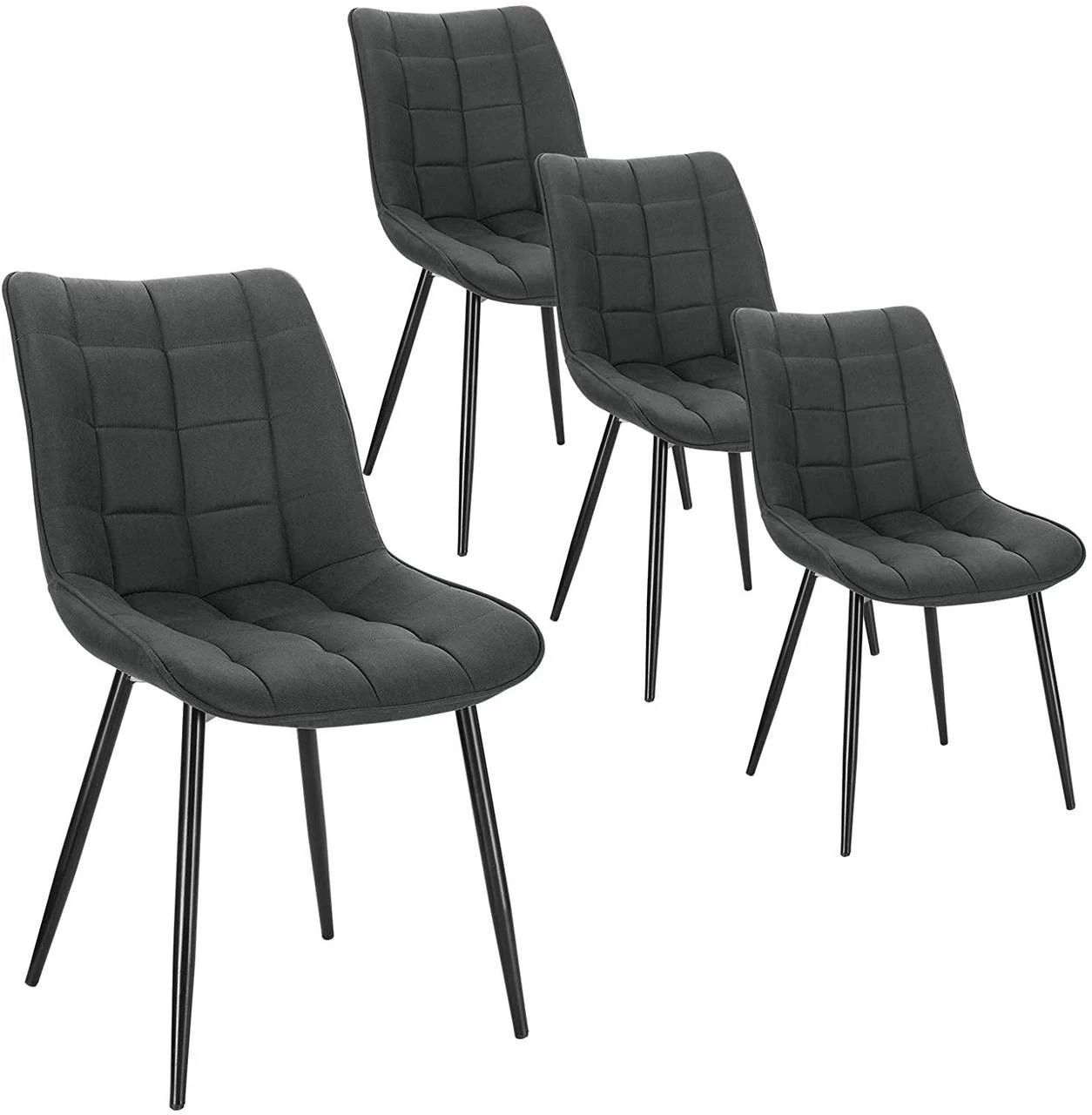 4er-Set Esszimmerstühle mit Rückenlehne, Sitzfläche aus Stoffbezug, Metallbeine