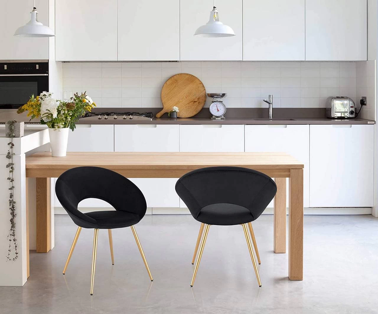 - ÄSTHETISCH & ERGONOMISCH: Die Kombination aus edlem glattem Samt und goldenen Metallbeinen macht den Esszimmerstuhl zu einem Blickfang und setzt exquisite Akzente in Ihrer Einrichtung. Mit seiner geschwungenen Rückenlehne und den abgeschrägten Armlehnen ist dieser Küchenstuhl ergonomisch und bietet Ihrem Rücken und Ihren Armen ausreichend Halt für ein äußerst bequemes Sitzen.