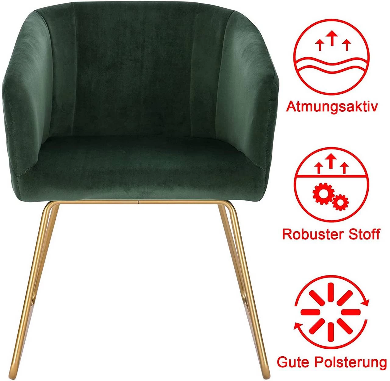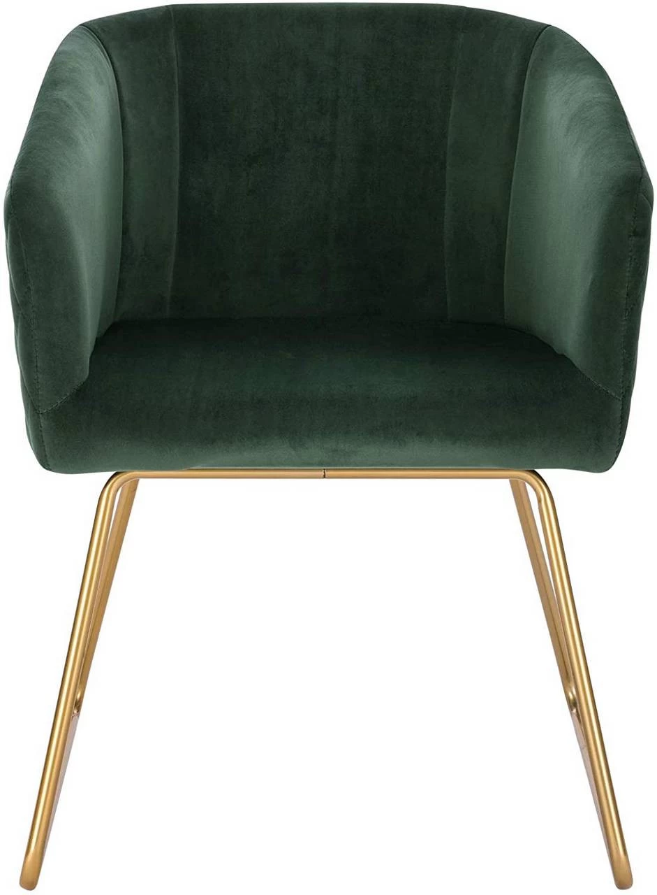 - ÄSTHETISCH & ERGONOMISCH: Die Kombination aus edlem glattem Samt und goldenen Metallbeinen macht den Esszimmerstuhl zu einem Blickfang und setzt exquisite Akzente in Ihrer Einrichtung. Mit seiner geschwungenen Rückenlehne und den abgeschrägten Armlehnen ist dieser Küchenstuhl ergonomisch und bietet Ihrem Rücken und Ihren Armen ausreichend Halt für ein äußerst bequemes Sitzen.