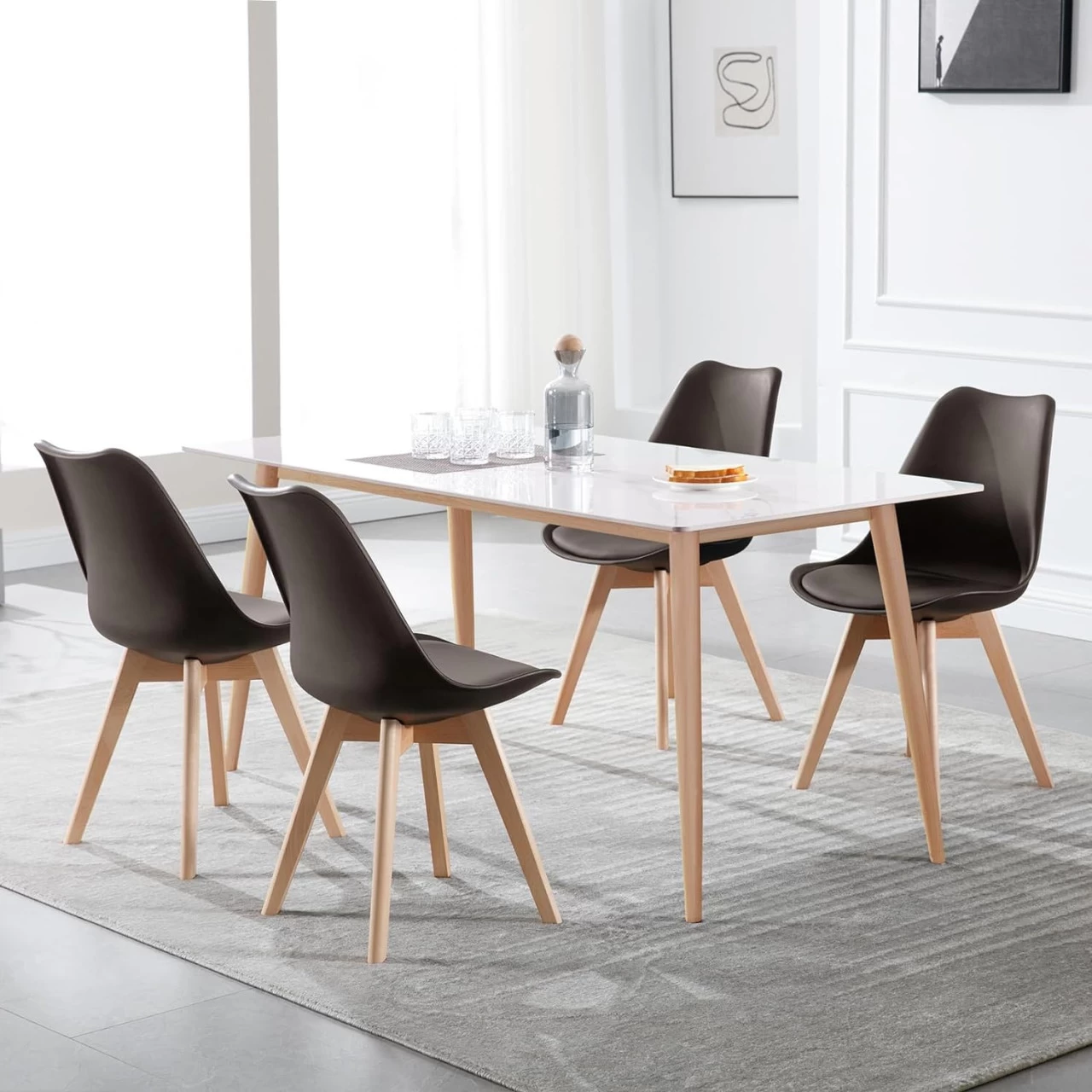 - Stabil und Robust: Der Esszimmerstuhl hat eine hochwertige PP-Rückenlehne und ein mit hochdichtem Schaumstoff gefülltes Kunstlederkissen. Die Massivholz-Beine sind kreuzweise unter der Sitzfläche montiert und sorgen für eine starke Struktur, die bis zu 120 kg tragen kann.