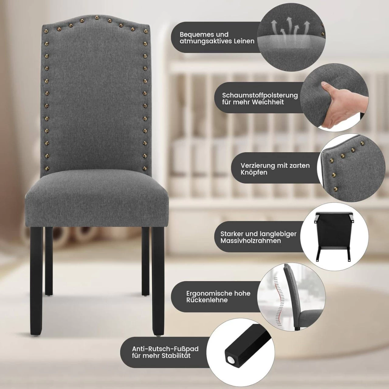Atmungsaktiv und bequem: Die Sitzfläche des Esszimmerstuhls ist mit weichem und atmungsaktivem Leinen bezogen und für mehr Komfort mit hochwertigem Schaumstoff gefüllt.