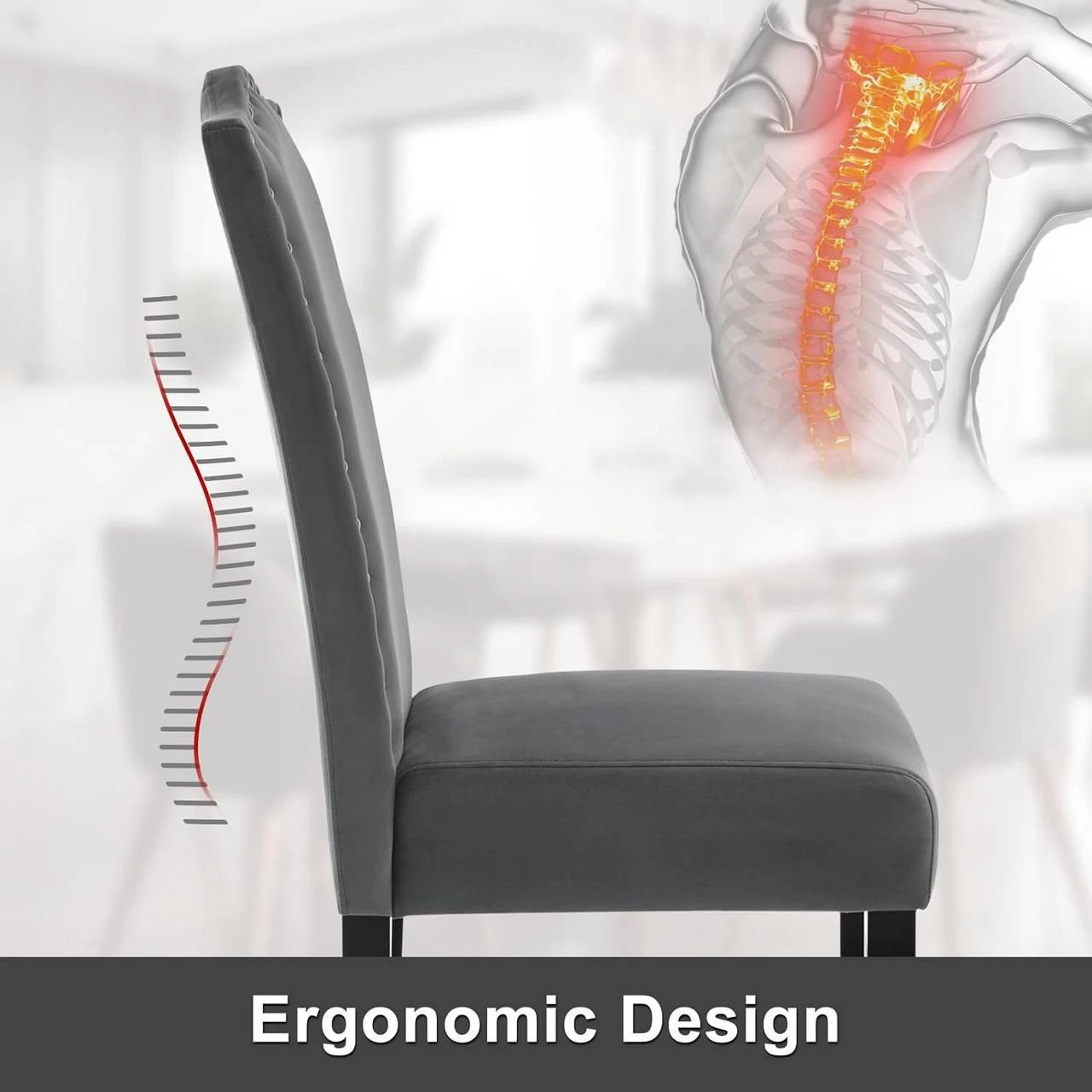 - BEQUEMER ERGONOMISCHERSTUHL: Mit hautfreundlichem Samtbezug und hochwertiger Schaumstoffpolsterung sind die hohe Rückenlehne und die Sitzfläche weich und elastisch. Für weiteren Komfort stützt die gewölbte Lehne Rücken und Nacken optimal ab.