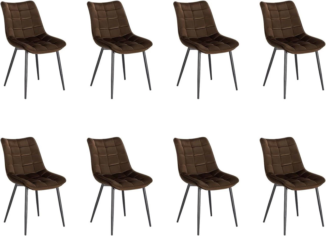 - Robuster Esszimmerstuhl: Der Stuhl (8er-Set) verfügt über eine strapazierfähige Samt-Oberfläche, eine hoch verdichtete Schaumstoffpolsterung und robuste Metallbeine. All dies trägt zu einer hohen Stabilität und Langlebigkeit bei. Maximale statische Belastbarkeit: 120 kg.