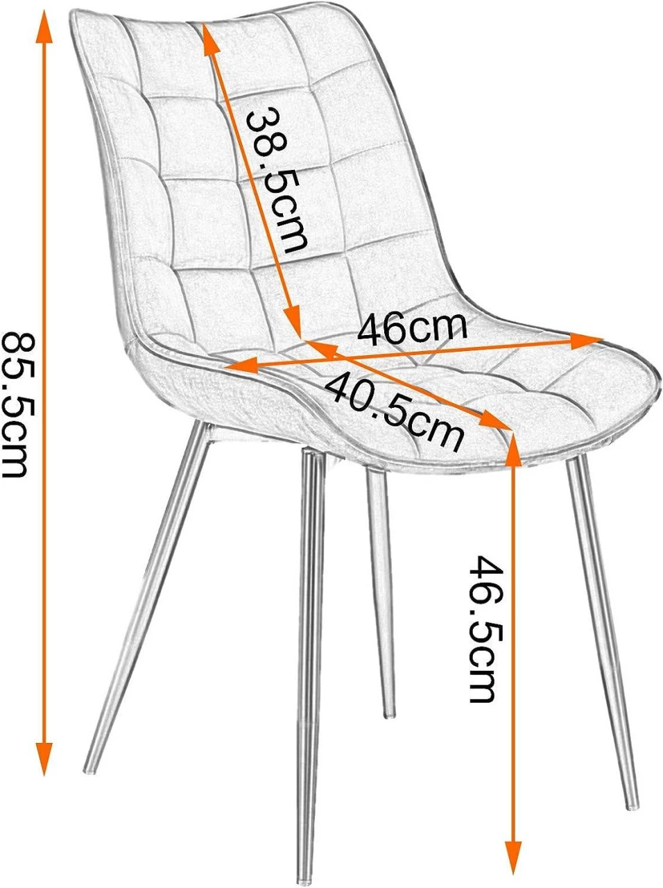 - Leicht zu montierender Polsterstuhl: Das Set wird zerlegt geliefert. Mit der übersichtlichen Anleitung ist die Montage im Handumdrehen erledigt. Alle Zubehörteile sind im Lieferumfang enthalten. Stuhlmaße – Gesamthöhe: 85,5 cm; Sitzhöhe: 46,5 cm; Sitzfläche: 46 x 40,5 cm (B x T); Rückenlehnenhöhe: 38,5 cm. (Für genauere Maße können Sie sich das Bild mit den Maßen ansehen).