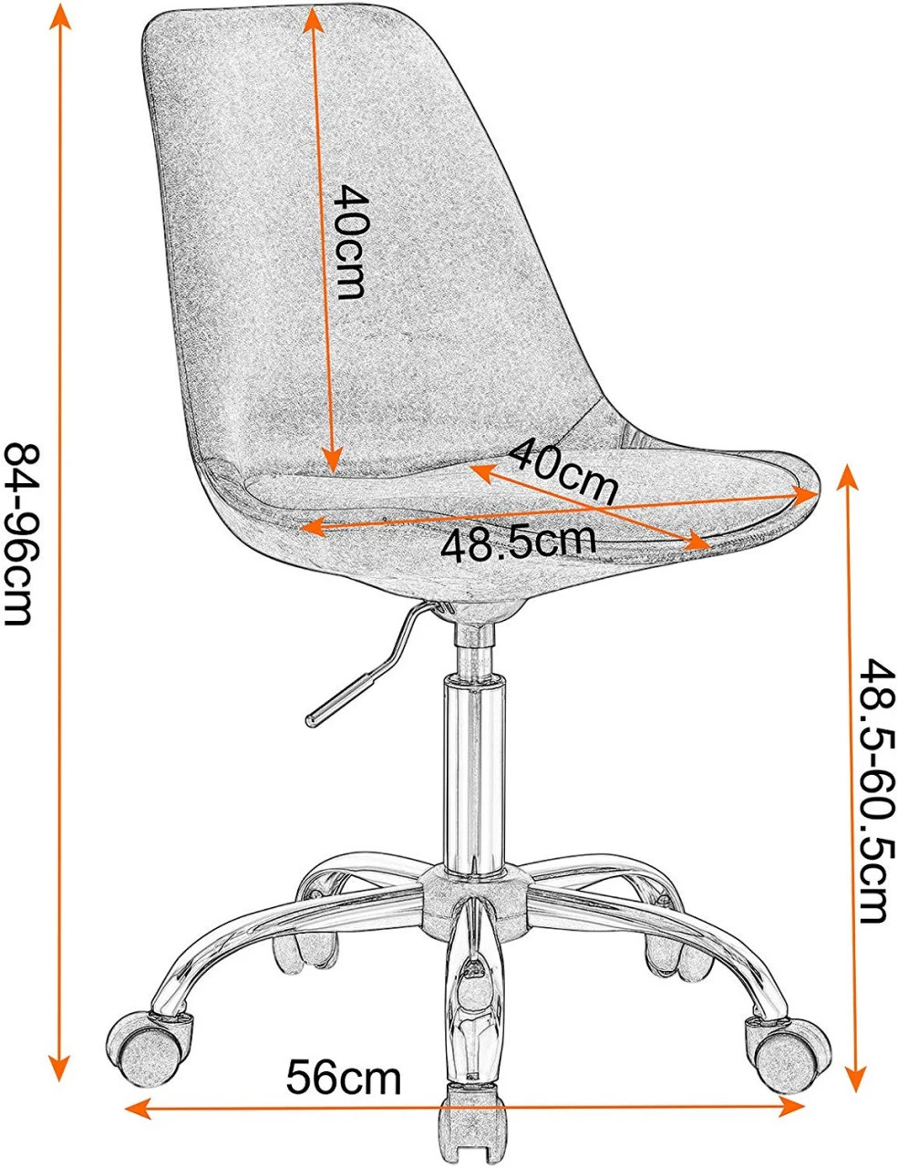 Höhenverstellung: Unter dem Sitz befindet sich eine um 360 Grad verstellbare Gasfeder. Durch Anheben des Hebels kann die Höhe eingestellt werden. (Die Sitzhöhe kann zwischen 48,5 – 60,5 cm eingestellt werden) Und wenn es die gewünschte Höhe erreicht, dann lassen Sie es.