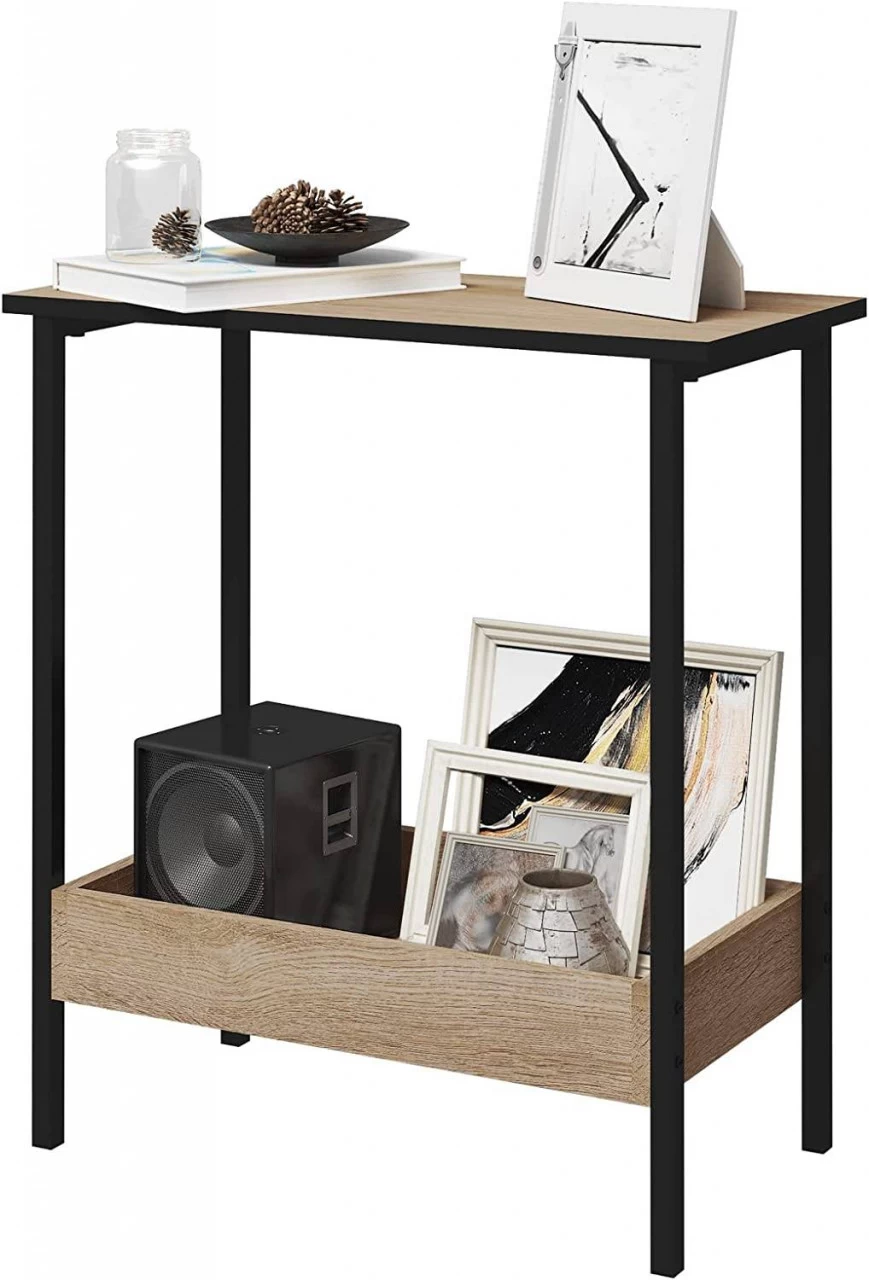 Doppellagiges Design: Der 50x55x25 cm Tisch hat eine kleine Stellfläche, aber die beiden Ablagen bieten zusätzlichen Stauraum für Sortieren und Organisieren Ihrer Sachen.