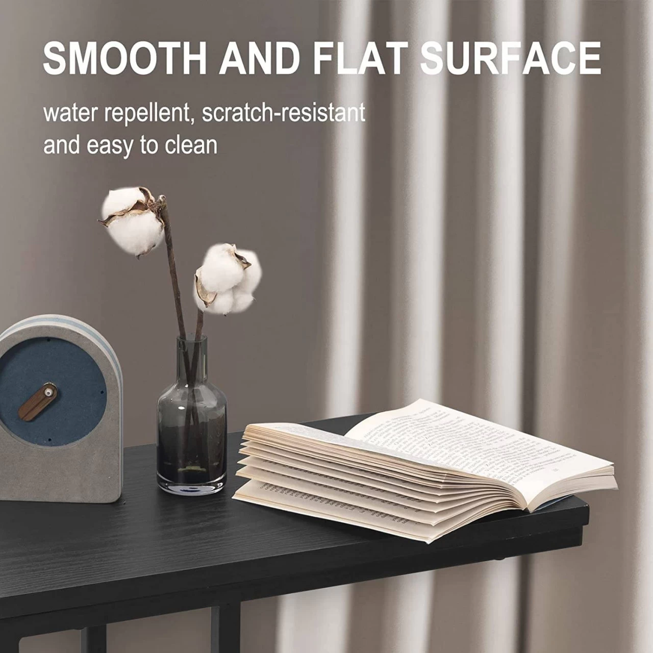 - Die Tischplatte aus hochwertigen MDF der Klasse E1 hat eine glatte, kratzfeste und pflegeleichte Struktur. Verwenden Sie zur Reinigung ein weiches feuchtes Tuch. Die Tischfläche von 45 x 25 cm (B x T) ist ausreichend, damit Sie am Computer arbeiten, lesen, essen oder andere Dinge tun können.