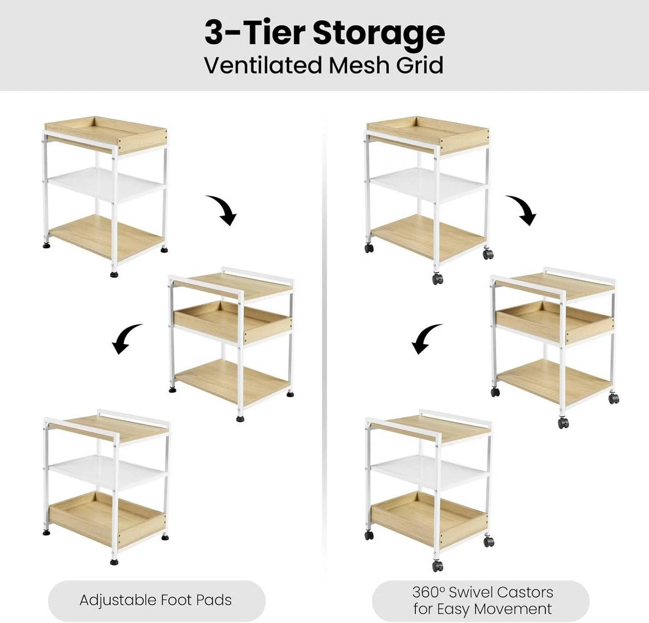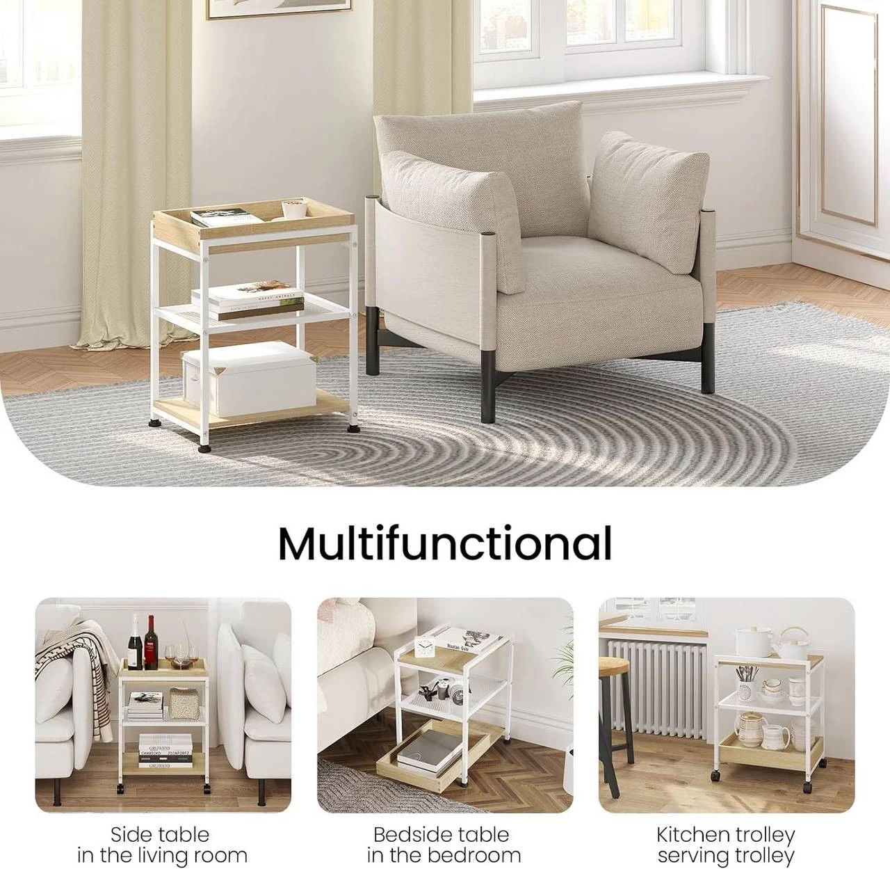 - SICHERE AUFBEWAHRUNG: Der Beistelltisch hat 3 Ablageflächen: die obere mit Seitenwänden schützt vor Herunterfallen und das Tablett ist einzeln benutzbar; die mittlere ist gitterartig und belüftet; die untere ist ideal für weniger benutzte Dinge