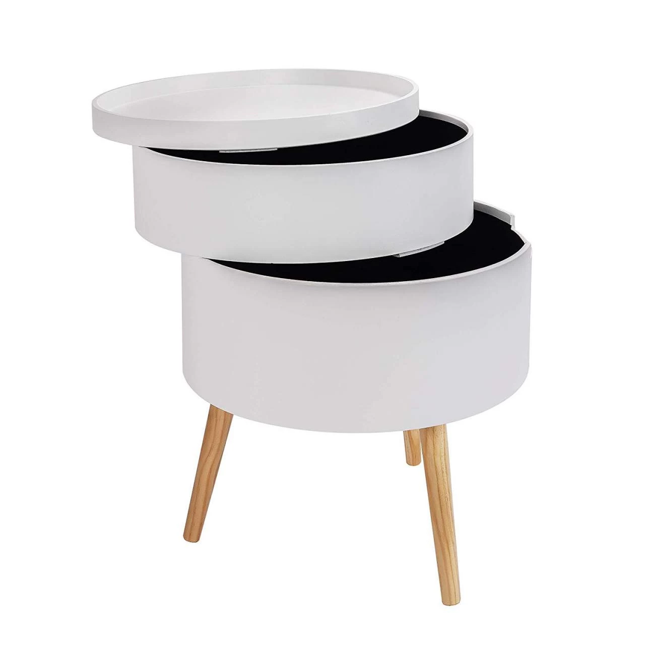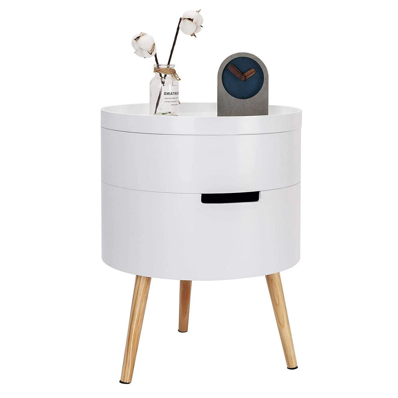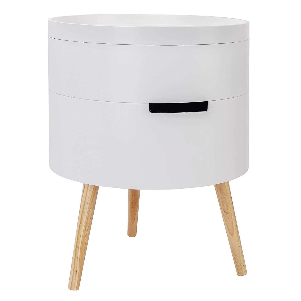 Einkerbung als Griff und Moderner Stil: Das Design mit der Einkerbung ist modisch, einfach und praktisch, sodass Sie das obere Staufach leicht anheben können, um Gegenstände zu holen. Mit einer einfachen und großzügigen Form ist der skandinavische runde Nachttisch eine gute Dekoration in Schlafzimmer, Wohnzimmer und Büro.