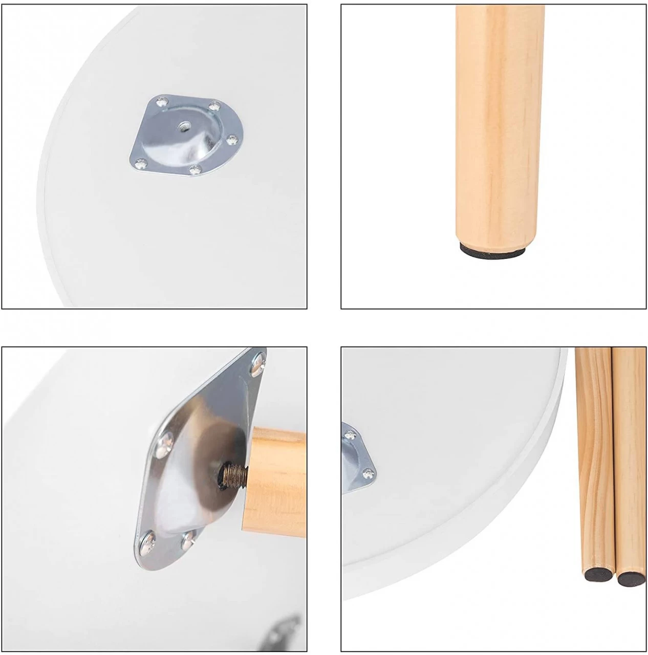 Montage und Demontage: sind sehr schnell und einfach. Die Kiefernholzbeine sind mit Schrauben ausgestattet. Sie schrauben die Tischbeine nur an die Tischplatte, um sie zu verwenden.