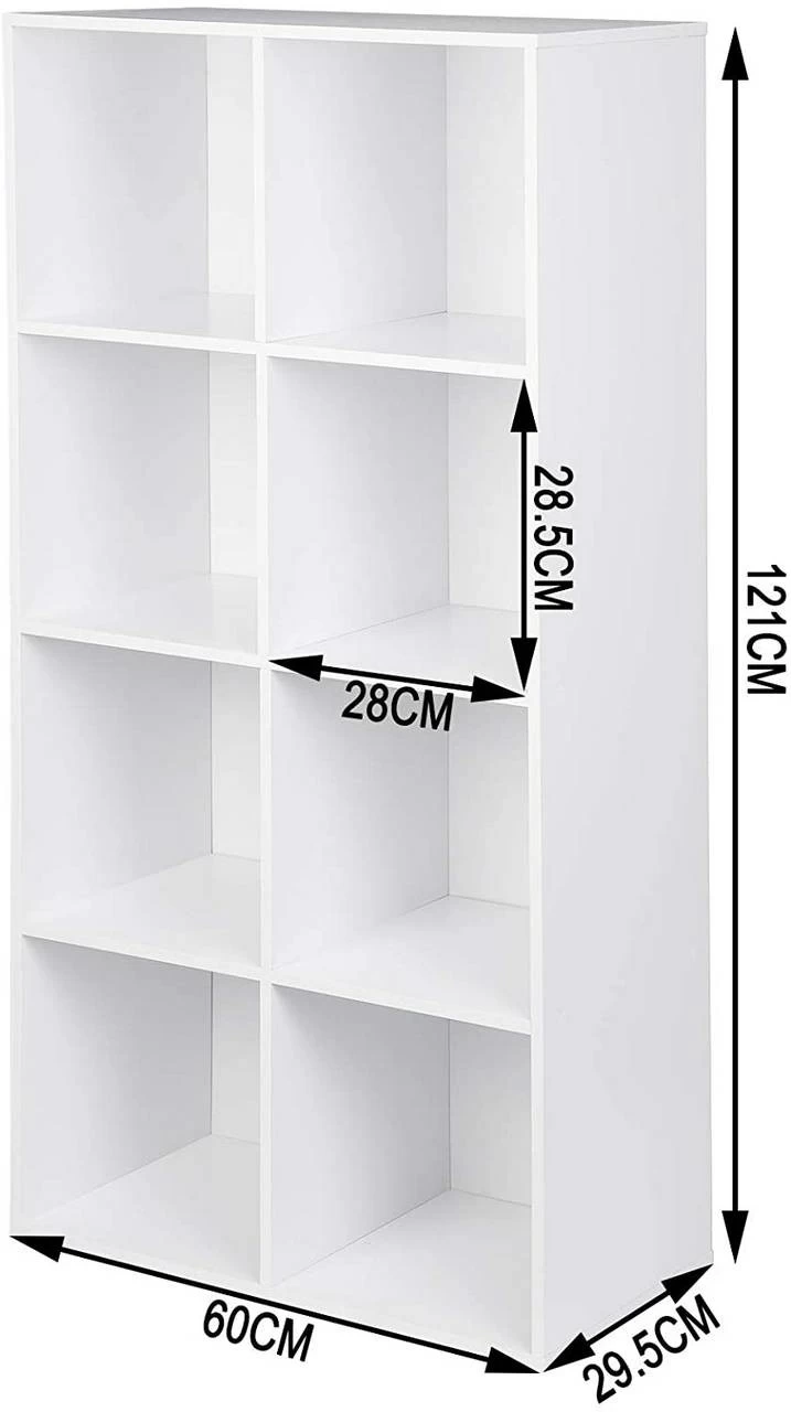 - Platzsparend: Das WOLTU Wandregal nimmt mit 8 jeweils 28,5 cm hohen Fächern wenig Platz ein, bietet aber viel Stauraum für Ihre Bücher, CDs, Spielzeug, Lehrbücher, Bilderrahmen oder andere Gegenstände. So können Sie Ihr Zuhause und Büro aufgeräumt und ordentlich halten. Gesamtgröße: 60 x 121 x 29,5 cm (B x H x T ), Größe jedes Faches: 28 x 28,5 x 29,5 cm (B x H x T).