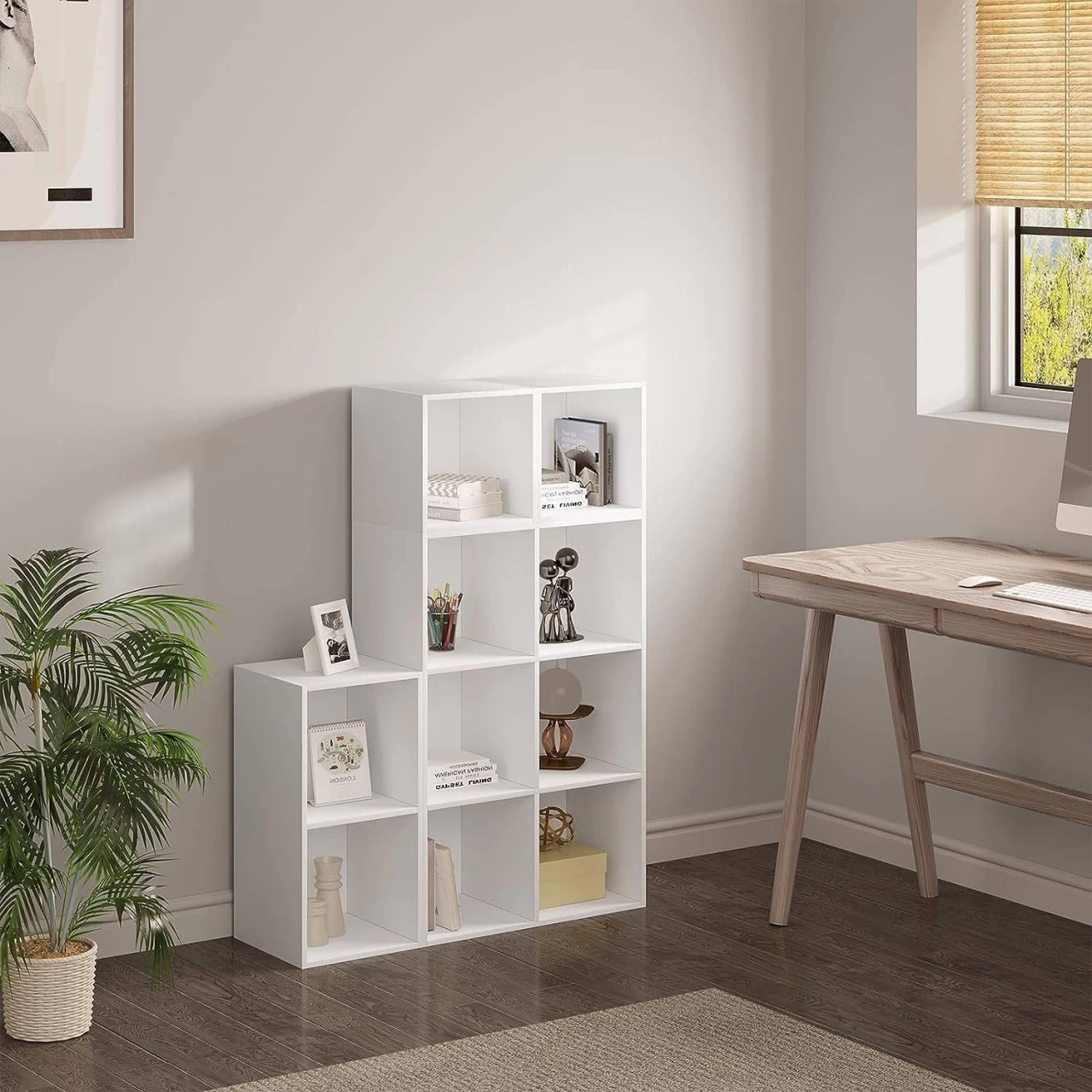 - Vielseitiges Möbelstück: Als Bücherregal im Wohnzimmer, als Etagenregal unter der Treppe, als Aufbewahrungsschrank im Schlafzimmer, als Ausstellungsregal im Büro, als Spielzeugregal im Kinderzimmer usw.