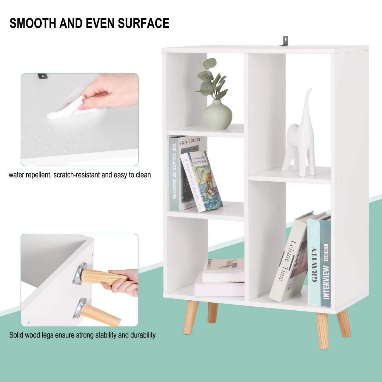 - Kein Chaos mehr: Das weiße Bücherregal mit den Maßen von 60 x 95 x 30 cm (B x H x T), hat 5 offene Fächer in 2 verschiedenen Größen. In diesen Fächern können Sie Ihre Bücher, Kunstwerke, Spielsachen, Dekorationen oder kleinen Schmuckstücke je nach Größe richtig unterbringen.