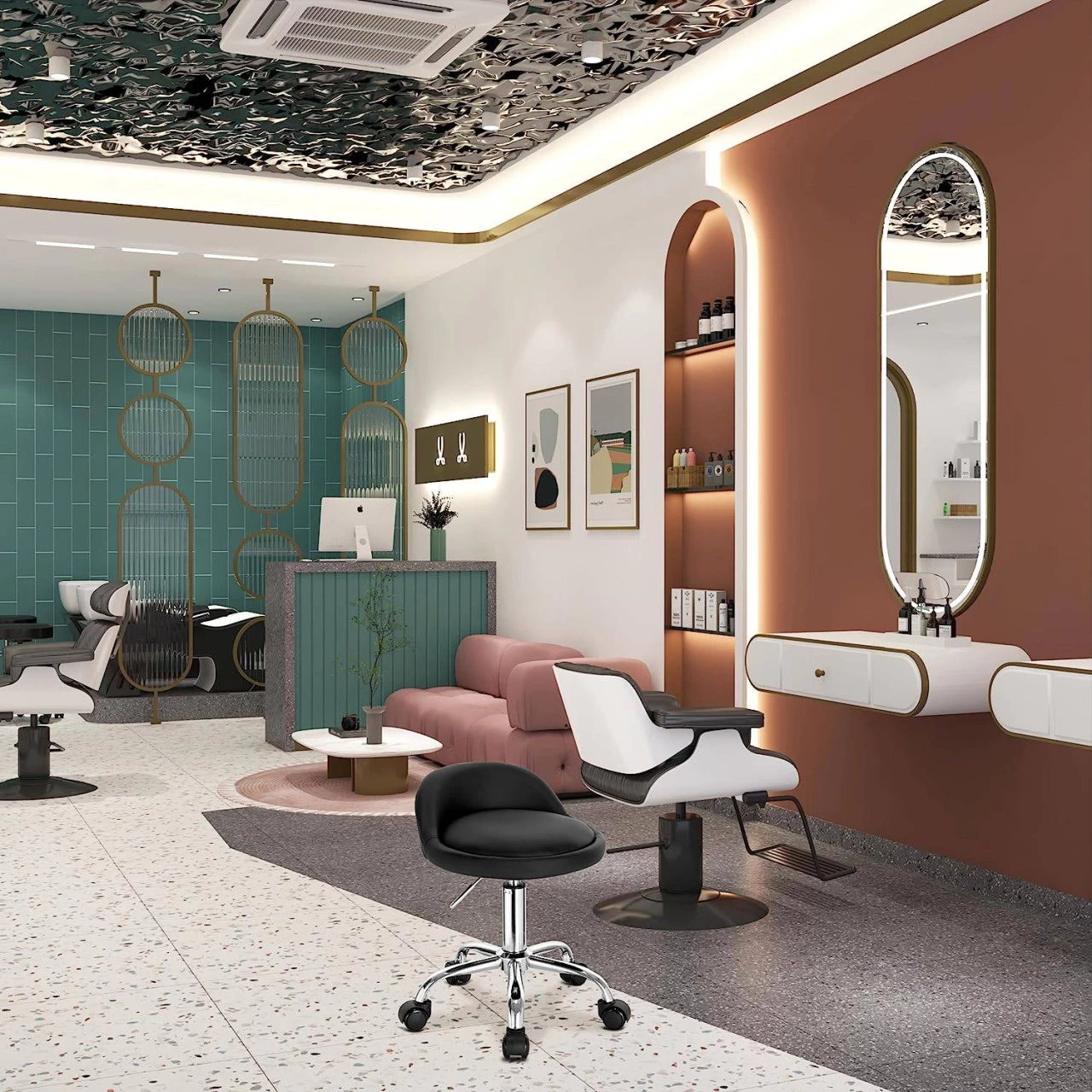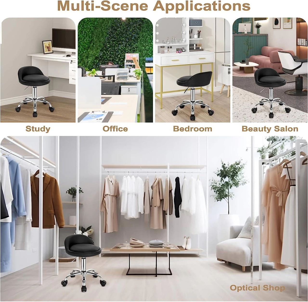 - Praktisch: kann als Arbeitshocker im Homeoffice, Friseurhocker, Salonhocker, Schminkhocker, etc. verwendet werden.