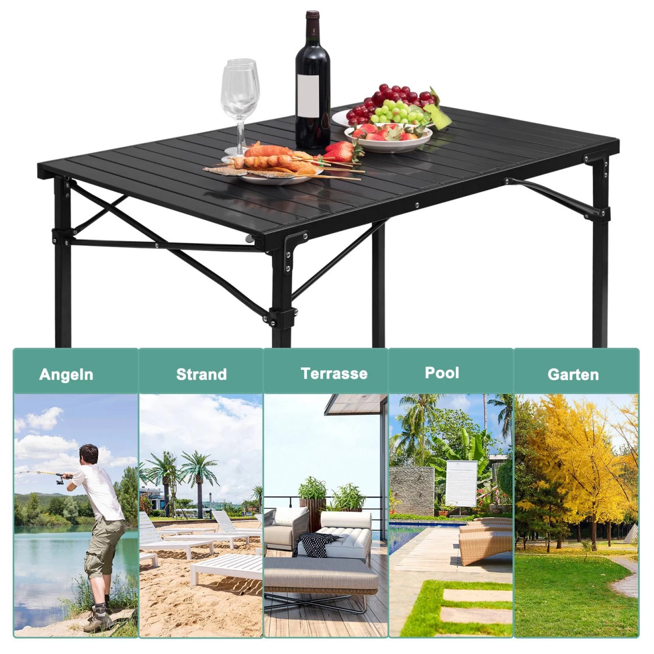 - Praktisch und langlebig: Die Aluminiumlegierung für Gestell und Tischplatte ist korrosionsbeständig, witterungsbeständig, rostfrei, verformungsbeständig und leicht zu reinigen. Grundlegende Eigenschaften überzeugen von der hochwertigen Qualität des Tisches. Nach jedem Gebrauch können Sie den Tisch mit einem feuchten Tuch abwischen.