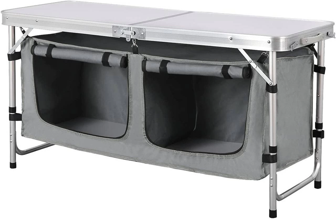 - Der Campingtisch mit einer Aufbewahrungstasche mit einem großen Fassungsvermögen von 15 kg ist ideal für Camping oder Picknick von mehreren Personen. Sie können ihn unter dem Tisch befestigen, um Utensilien oder Lebensmittel nach Belieben zu verstauen.