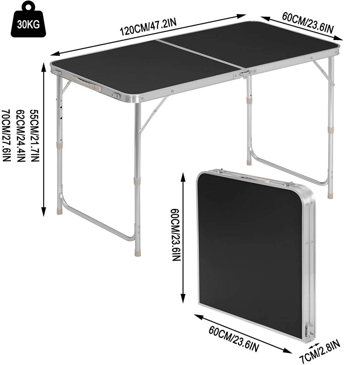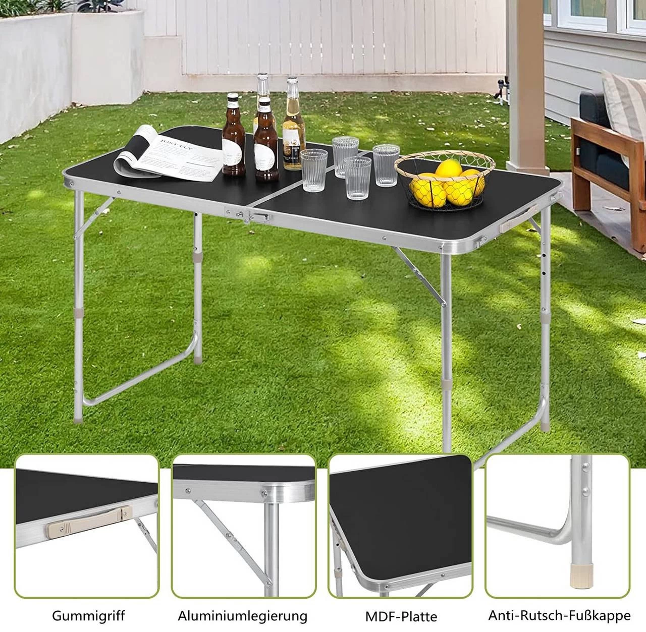 - GERÄUMIGE TISCHPLATTE: Die 60 x 120 cm große Tischplatte bietet reichlich Platz, sodass 4-6 Personen am Tisch bequem essen können. Speisen, Desserts und Getränke können auch auf der Platte dieses höhenverstellbaren Campingtisches sicher abgelegt werden