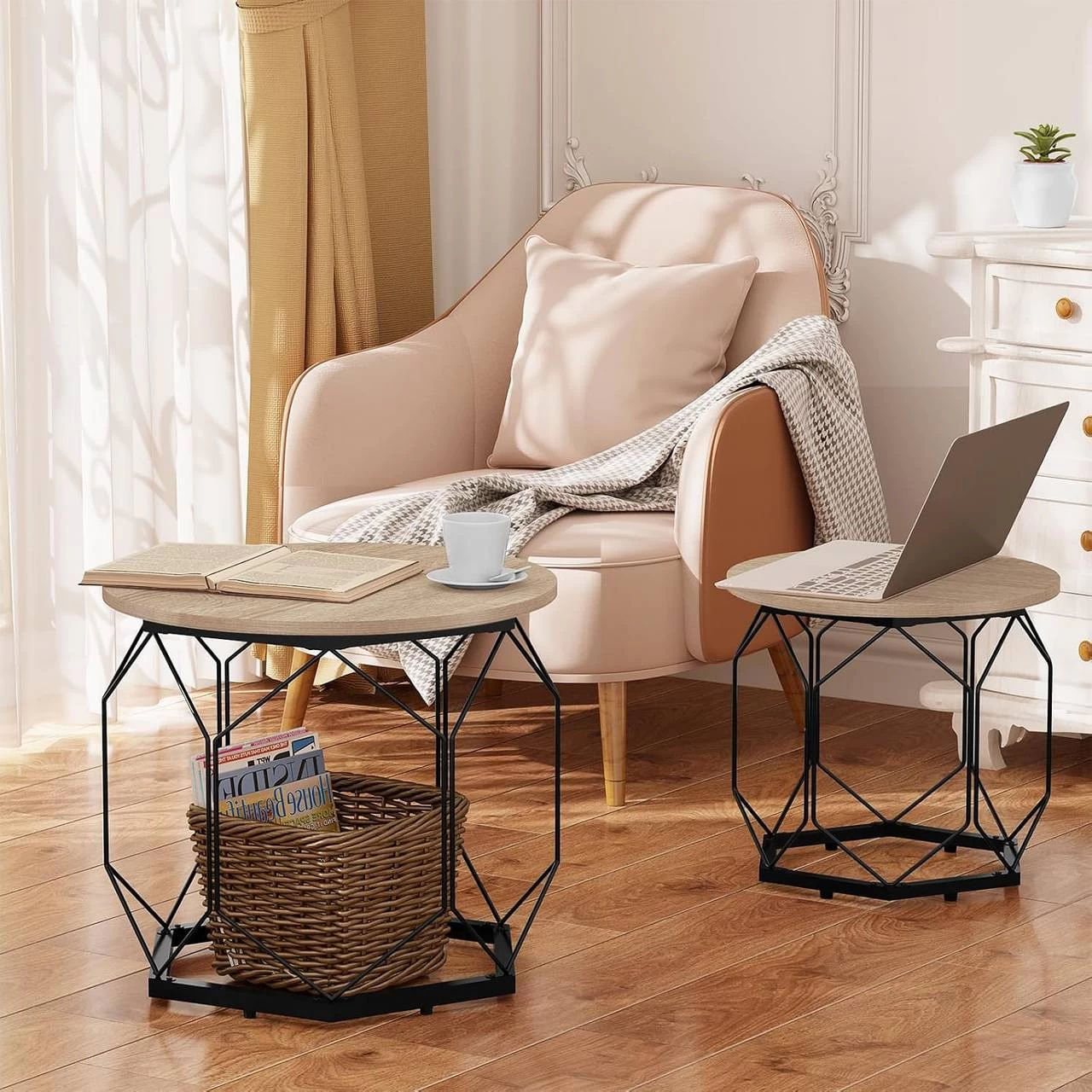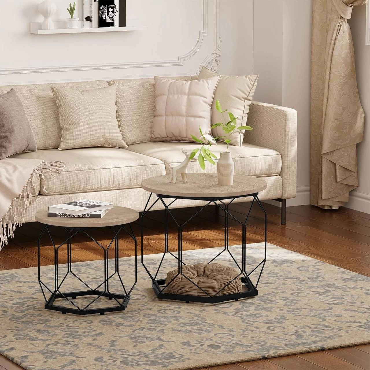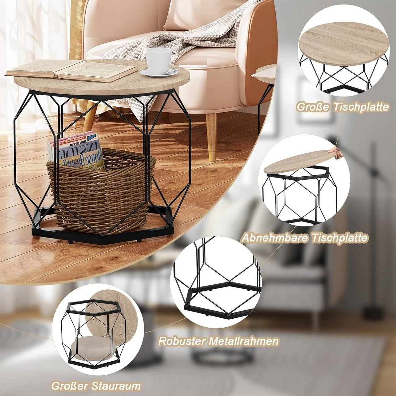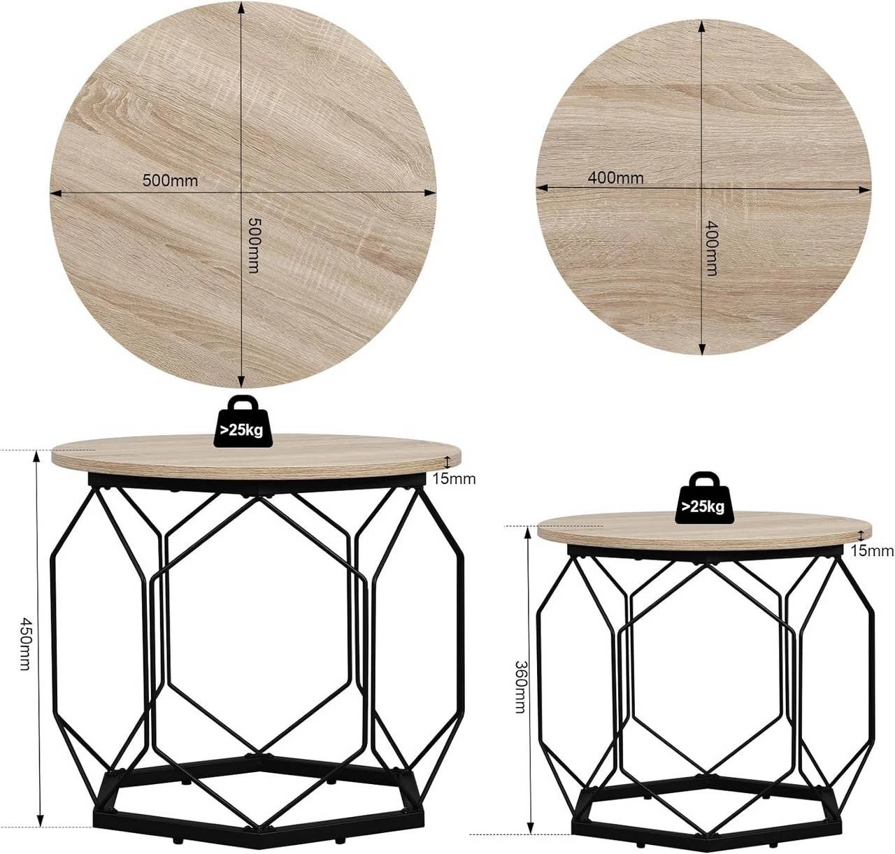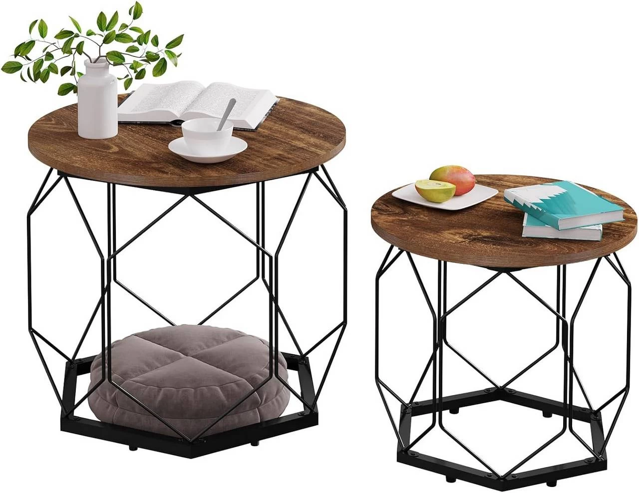 - 2ER-SET: Das Wohnzimmermöbel-Set besteht aus zwei Couchtischen mit Durchmesser von 40 und 50 cm, auf denen Vasen und Obst stehen, die Hohlräume unter den Tischplatten sind für Bücher und Spielzeug, alles wird in Ordnung und bequem für Ihr Leben sein