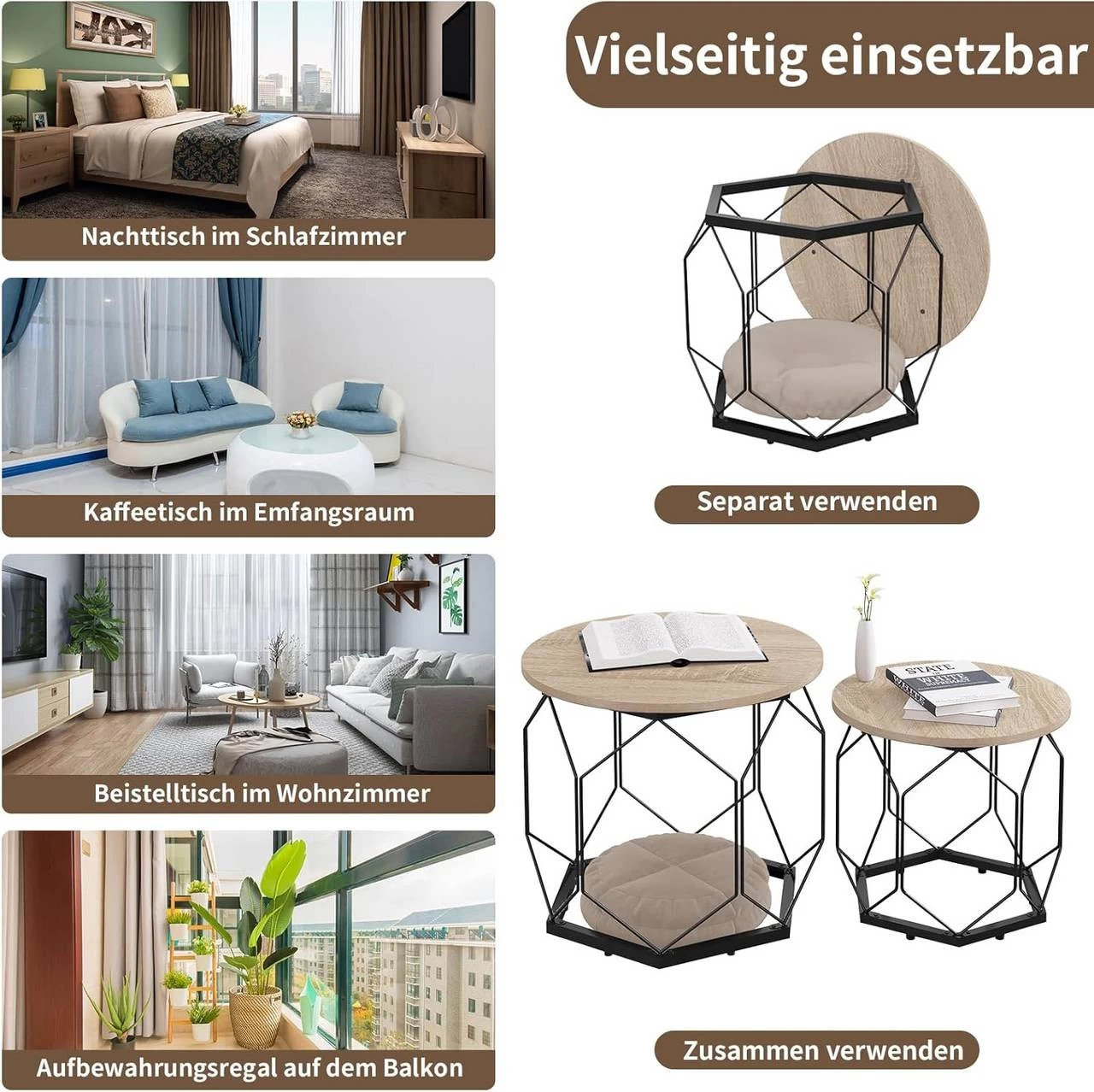- MEHRZWECK: Mit abnehmbaren Tischplatten ist das Beistelltisch-Set kompakt und einzigartig. Verwenden Sie es einzeln oder in Kombination, als Computertisch, Kaffeetisch, Sofatisch, Telefontisch oder sogar als Nachttisch, die Anordnung liegt bei Ihnen!