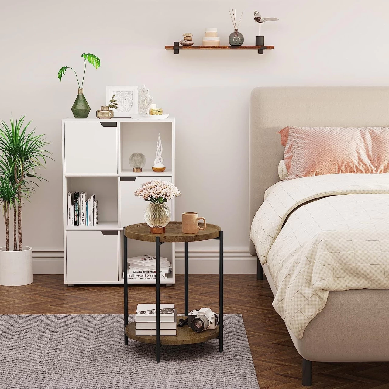 Geeignet für viele Szenarien: Tragbar und leicht zu bewegen Dieser kleine Couchtisch nimmt nur wenig Platz ein, bietet Ihnen aber zusätzlichen Stauraum. Sie können ihn in Ihrem Wohnzimmer, Schlafzimmer, Arbeitszimmer, Balkon usw. aufstellen, um Ihre Zimmer zu dekorieren und Ihr Leben zu erleichtern. Dieser kleine Tisch wiegt nur 3 kg und die runde Tischplatte liegt sicher und bequem in der Hand, sodass Sie ihn sicher und einfach bewegen können.