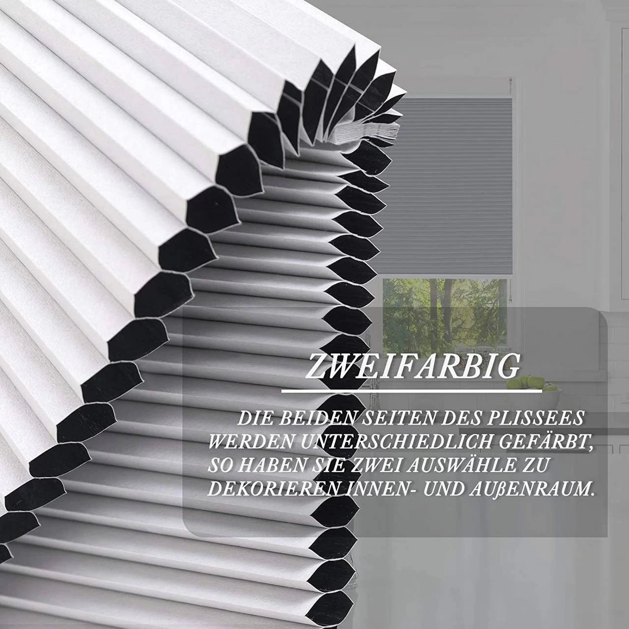 - Dieses Plissee bietet Sicht-, Licht-, Blend-, Hitze-, Kälte- und Schallschutz durch die aluminiumbeschichtete Wabenstruktur und den blickdichten doppelten Polyesterstoff.