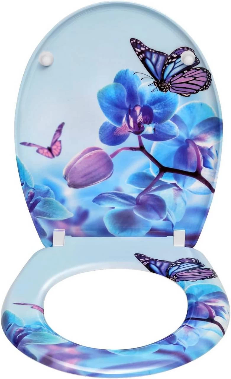 Hochwertiges Duroplast: Der dreiseitig bedruckte Toilettensitz hat eine glänzende Oberfläche, die den keramischen Glasuren ähnelt. Sie ist robust, gut belastbar, antibakteriell, korrosionsbeständig, kratzfest und farbfest. Ideal für den WC-Sitz im Familienbad. Schale fertig, schöne Badezimmerdekoration. Universal in EU klobrille in O-Form, stilvoller Design-toilettenbrille, lebendiges Badezimmer