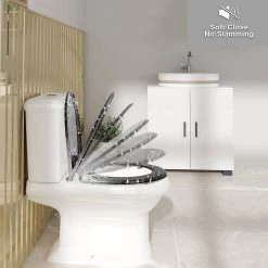 - Duroplastic Toilettendeckel: Der WC-Sitz ist aus Duroplast gefertigt. Seine Oberfläche ähnelt keramischen Glasuren, ist glatt, antibakteriell und leicht zu reinigen. Die Scharniere, die den Klodeckel und das WC verbinden, sind aus rostfreiem Stahl gefertigt, robust und langlebig. Darüber hinaus hat der Sitz aufgrund seiner Bedruckung ein schönes und modisches Aussehen und ist eine gute Dekoration für Ihr Badez