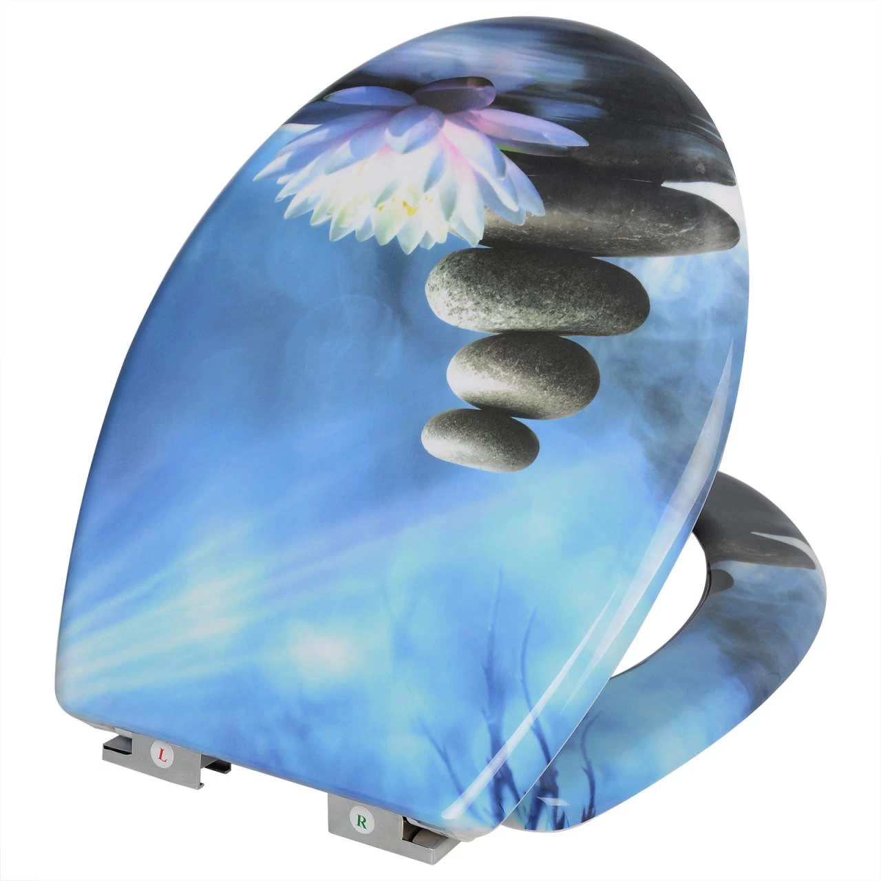 Toilettensitz mit Absenkautomatik aus Duroplast, Motiv Stein-Wasserblume