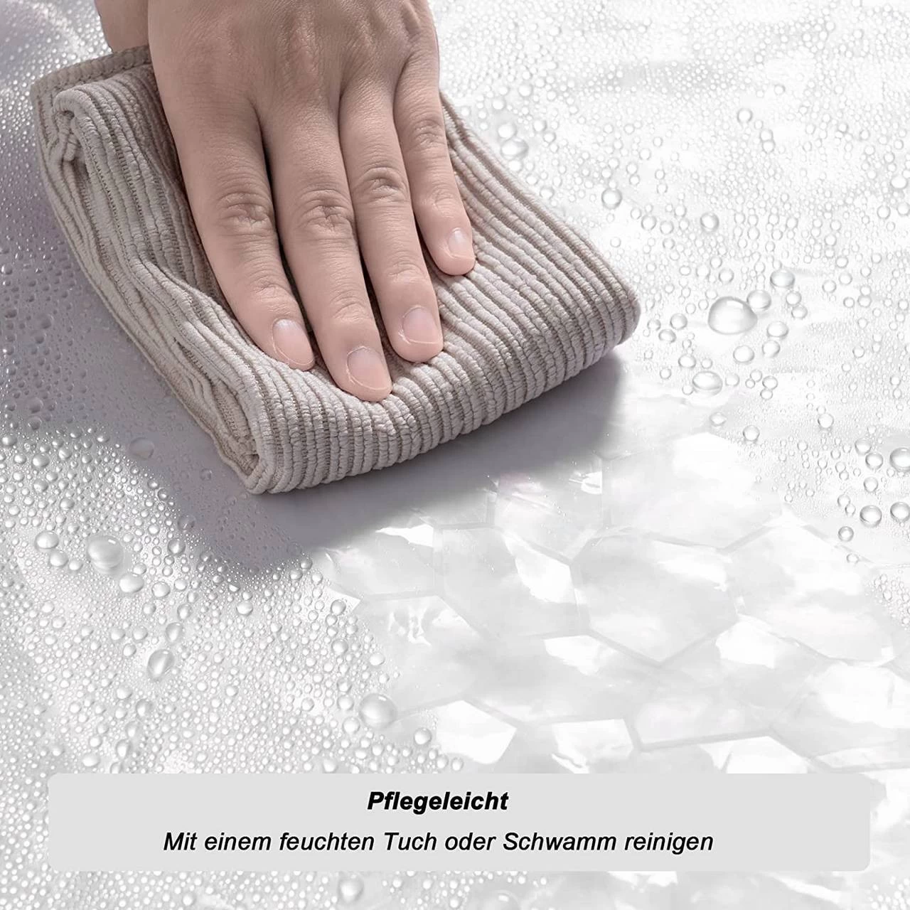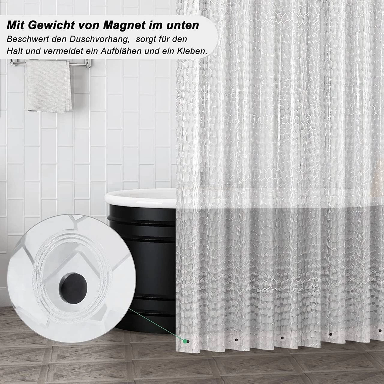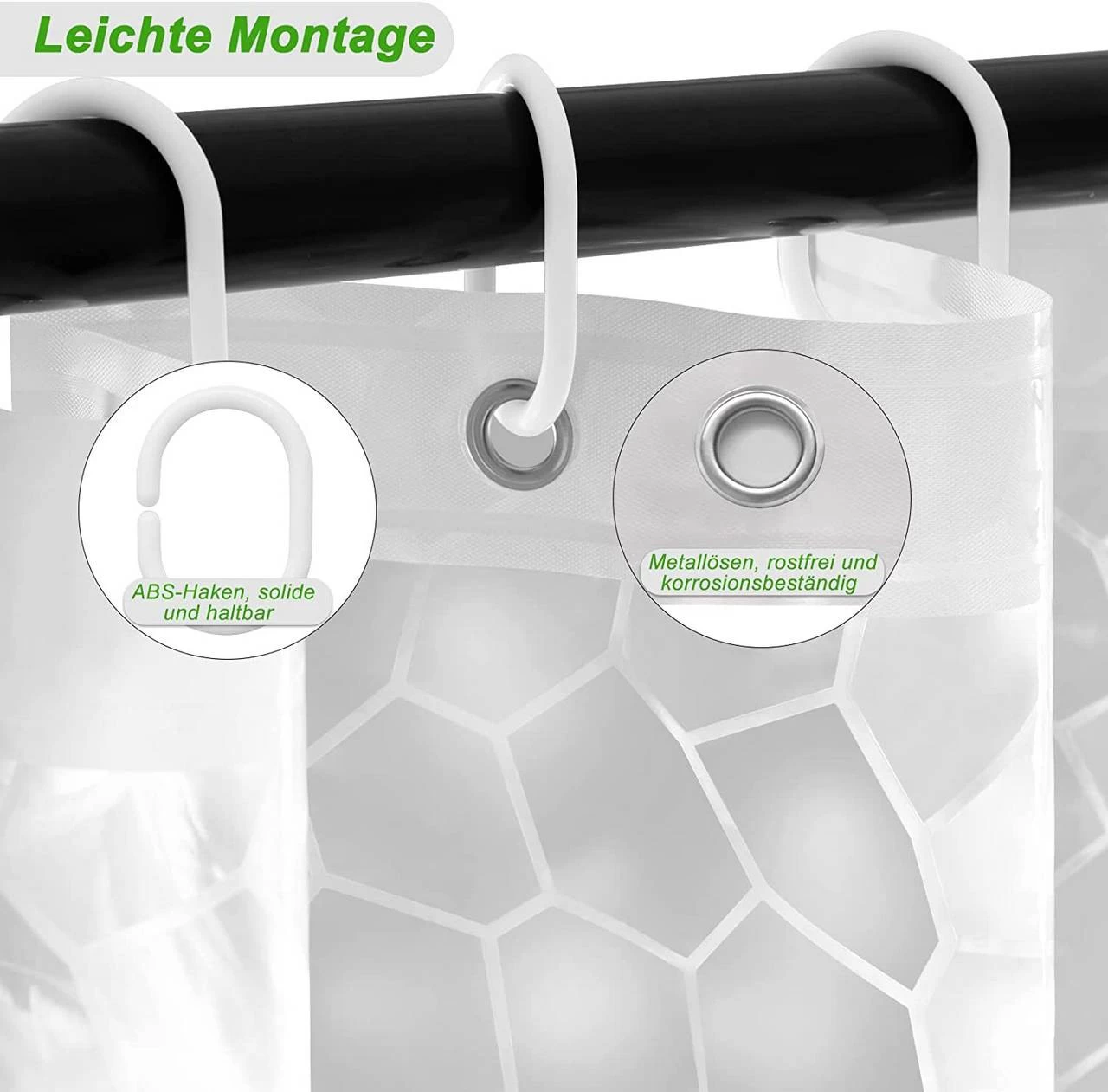 - Benutzerfreundlich: Der Duschvorhang hat je nach Größe 3-5 Magnete im unten, um zu verhindern, dass er umweht und an der Haut klebt. Die 3D-Optik mit semitransparenten Sechseckmustern sorgt für Licht, Sichtschutz und Dekoration zugleich