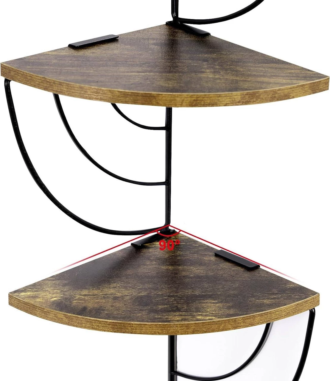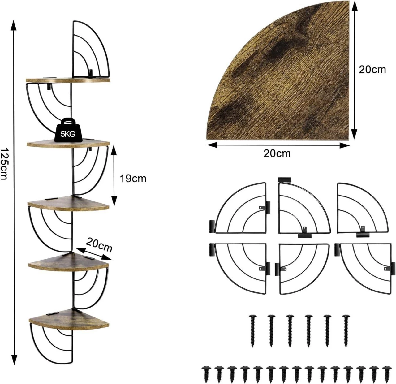 - ZUVERLÄSSIGE QUALITÄT: Dank des 12 mm hochwertigen Holzwerkstoffs mit Melaminfurnier und 3 mm bzw. 5 mm schwarz pulverbeschichtetem Metalls ist das Eckregal stabil, glatt, rostfrei, leicht zu reinigen und langlebig. Jede Ablage kann 5kg tragen
