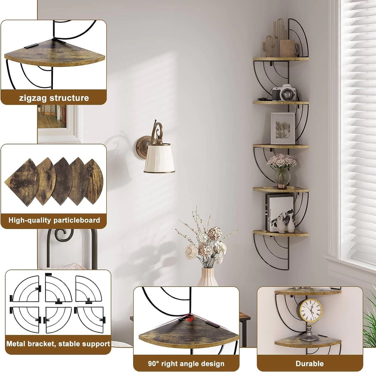 - Das Zickzack-Form-Design passt gut in den Ecken der Wand.