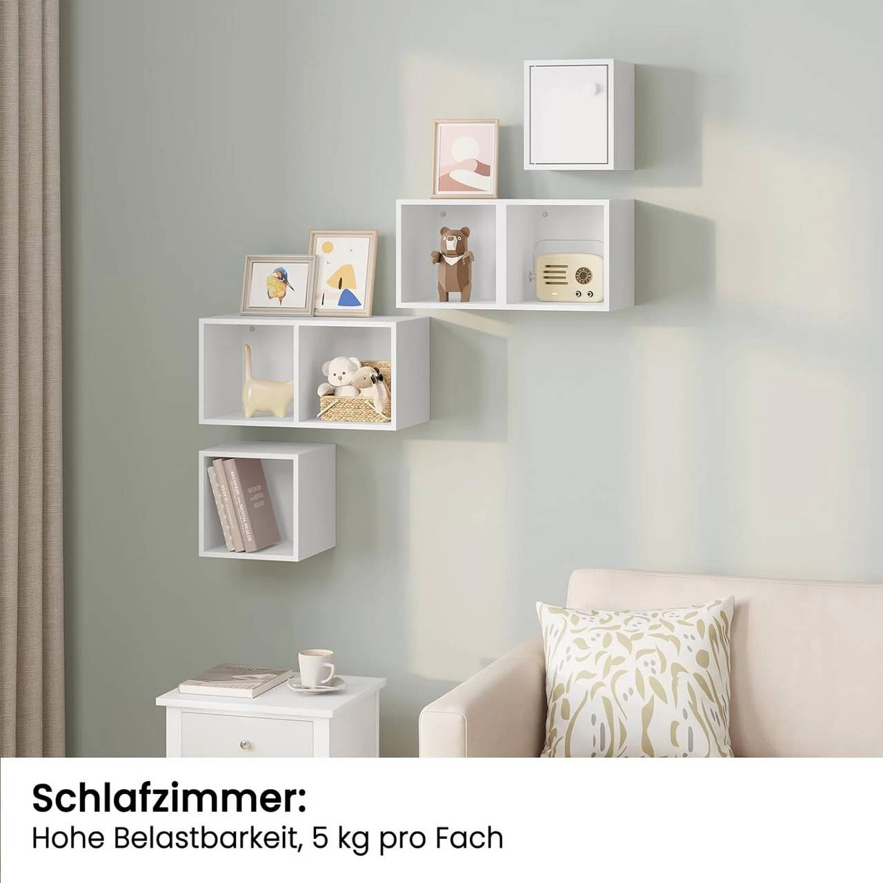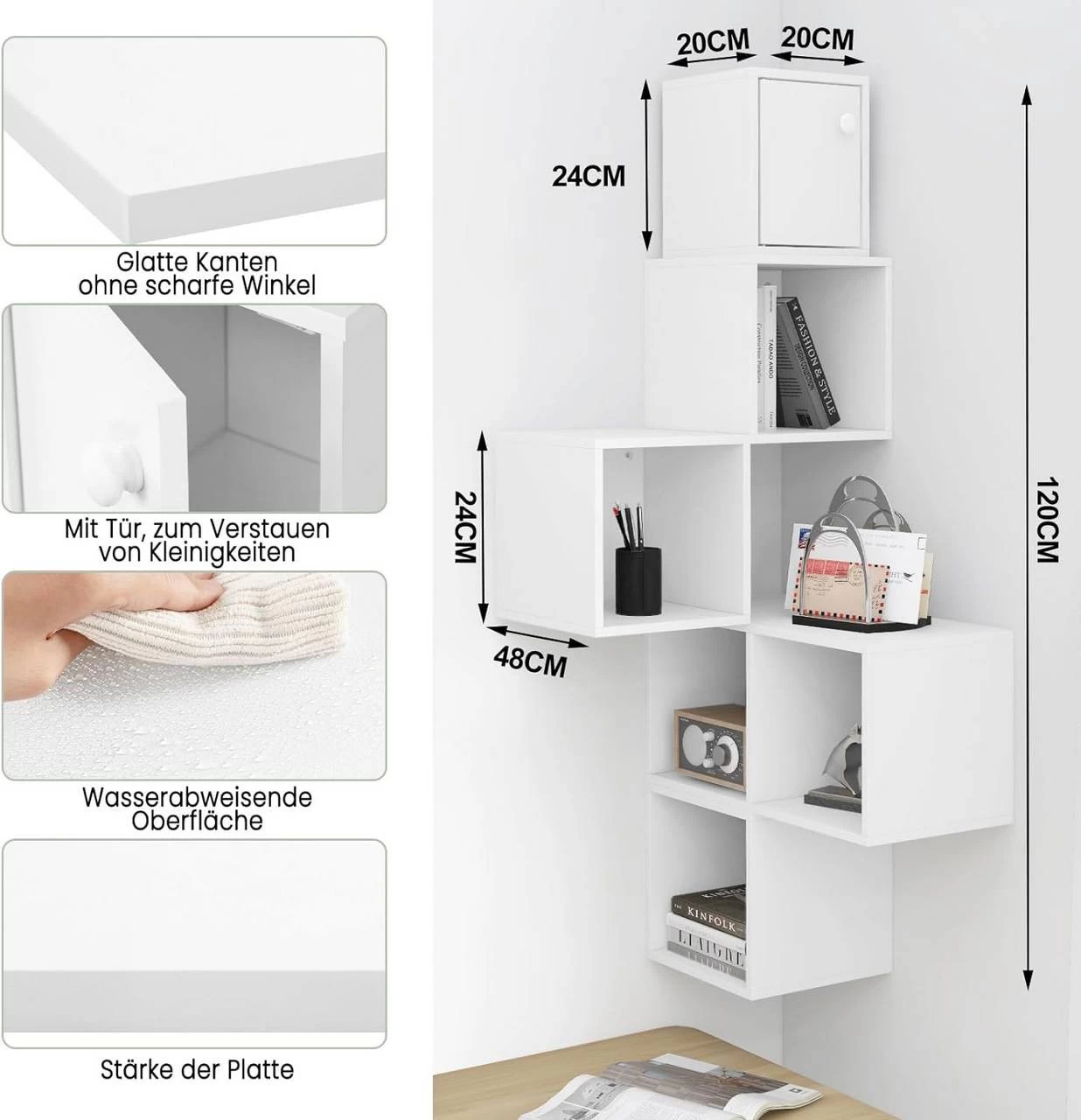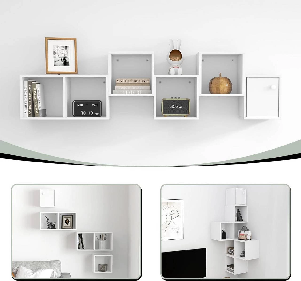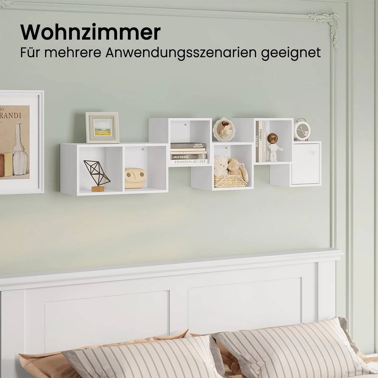 - LAGERUNG & DEKORATION: Das Regal für Wand besteht aus 6 weißen Fächern, von denen 1 eine Tür hat. Sie können Topfpflanzen, Bücher, Schmuckstücke platzieren und private Gegenstände verstecken. Als eine Wanddeko ist es einfach, ästhetisch und modern.