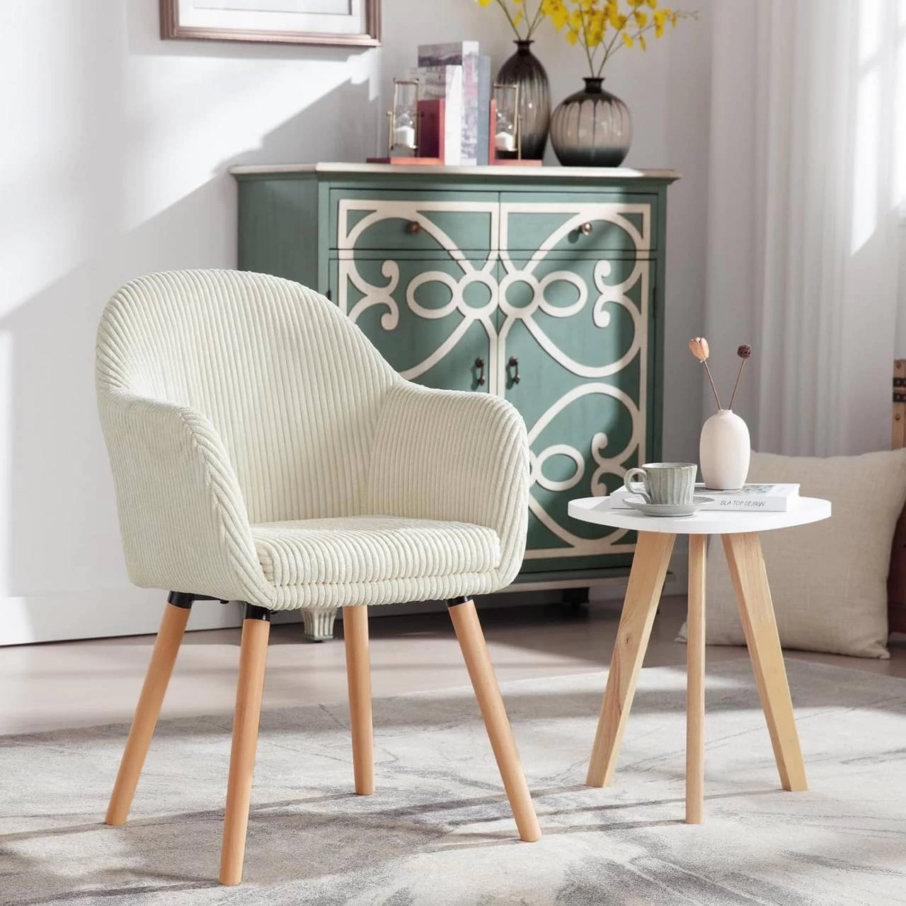 - HOHER KOMFORT: Großer Sitz, hochwertiger Cordbezug und elastische Polsterung für angenehmes Sitzgefühl, Rücken- und Armlehnen in einem Stück für umschließende Stützung. Auf diesem Esstischstuhl können Sie Ermüdung lindern und sich gut entspannen.