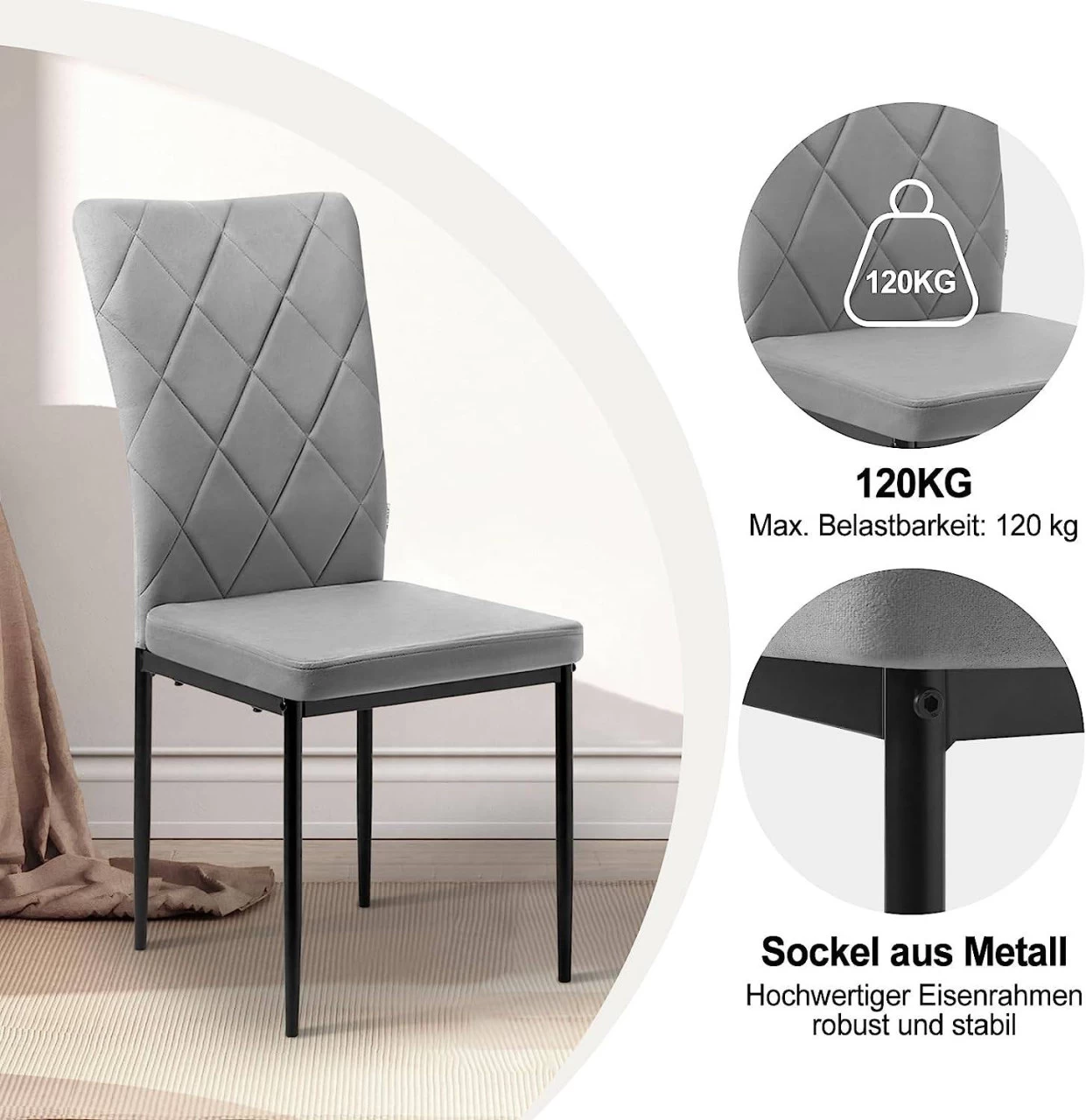 Metallgestell: Gestützt durch das robuste Metallgestell und die Metallbeine, ist der Wohnzimmerstuhl robust, stabil und kann bis 120 kg tragen.