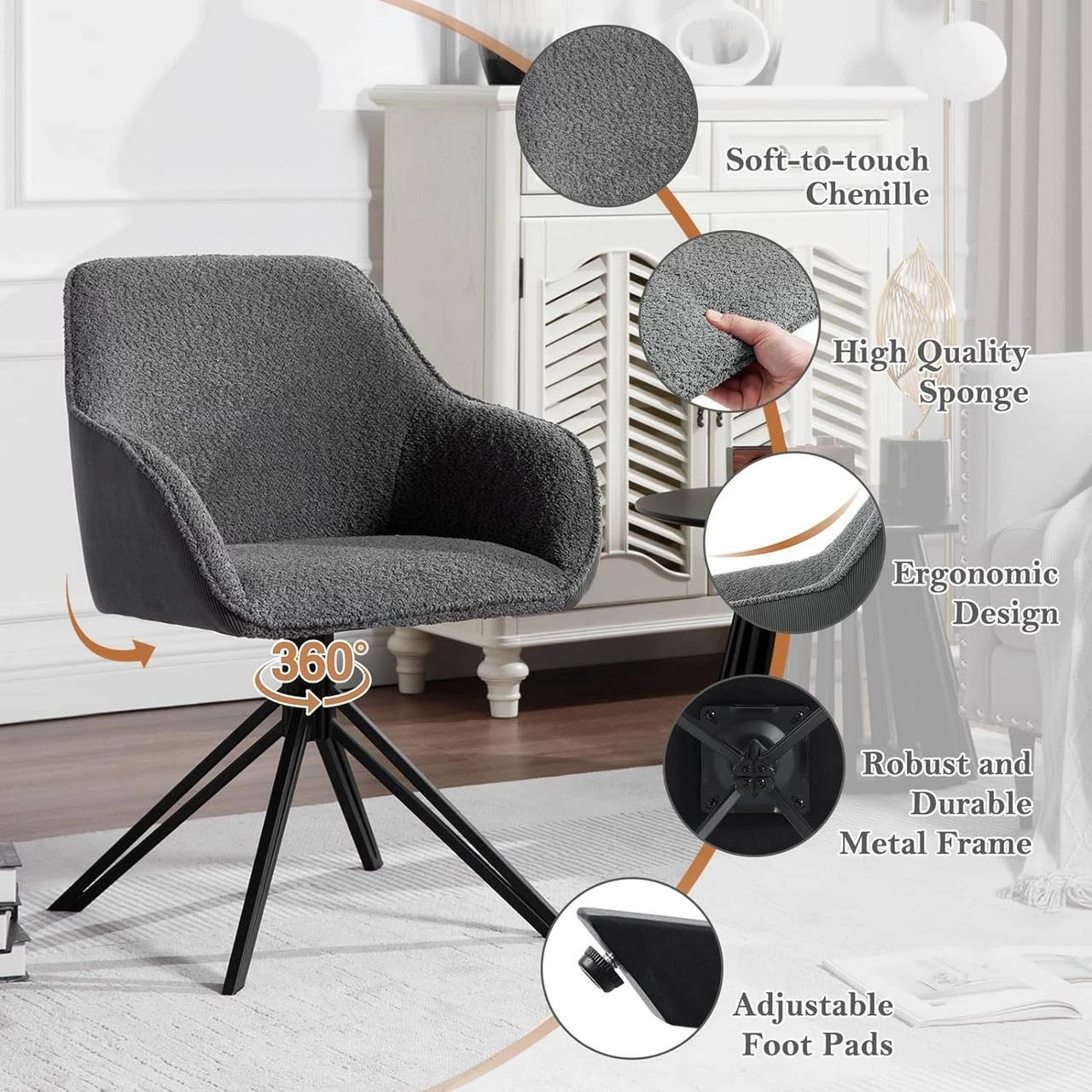 - UM 360 GRAD DREHBARER SITZ: Sie müssen den Armlehnenstuhl nicht bewegen und drehen Sie einfach den Sitz sanft, wenn Sie sich an den Esstisch setzen oder den Tisch verlassen möchten, was bequem und praktisch ist.