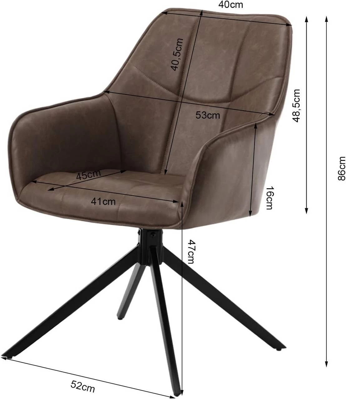 - BREIT GEPOLSTERT: Der bequeme Stuhl hat eine ergonomische und gepolsterte Sitzfläche, Rückenlehne und Armlehnen.Mit elastischer Schaumstoffpolsterung und weichem Bezug aus pflegeleichtem Vintage-Kunstleder bietet er ein angenehmes Sitzerlebnis. Sitzgröße: 41x45cm