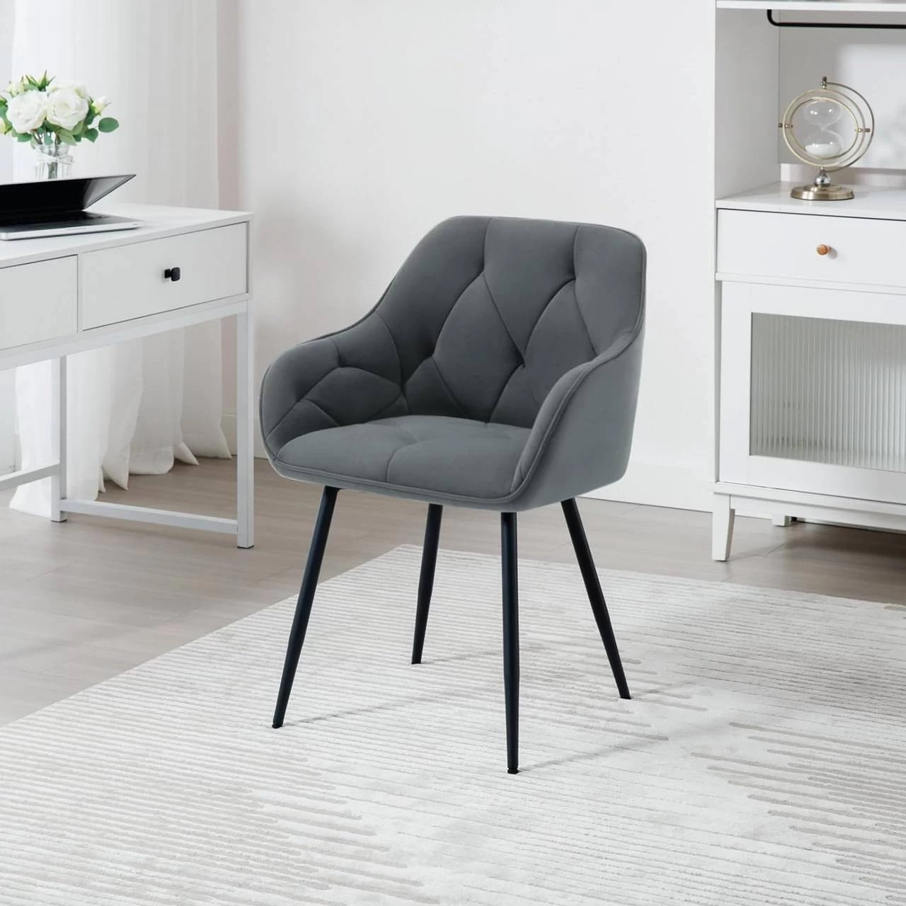 Für jeden Raum geeignet: Sie können ihn als Esszimmerstuhl im Esszimmer und in der Küche, als Schminkstuhl im Schlafzimmer, als Bürostuhl im Home Office oder als Loungesessel im Wohnzimmer, auf dem Balkon oder im Empfangsbereich verwenden.