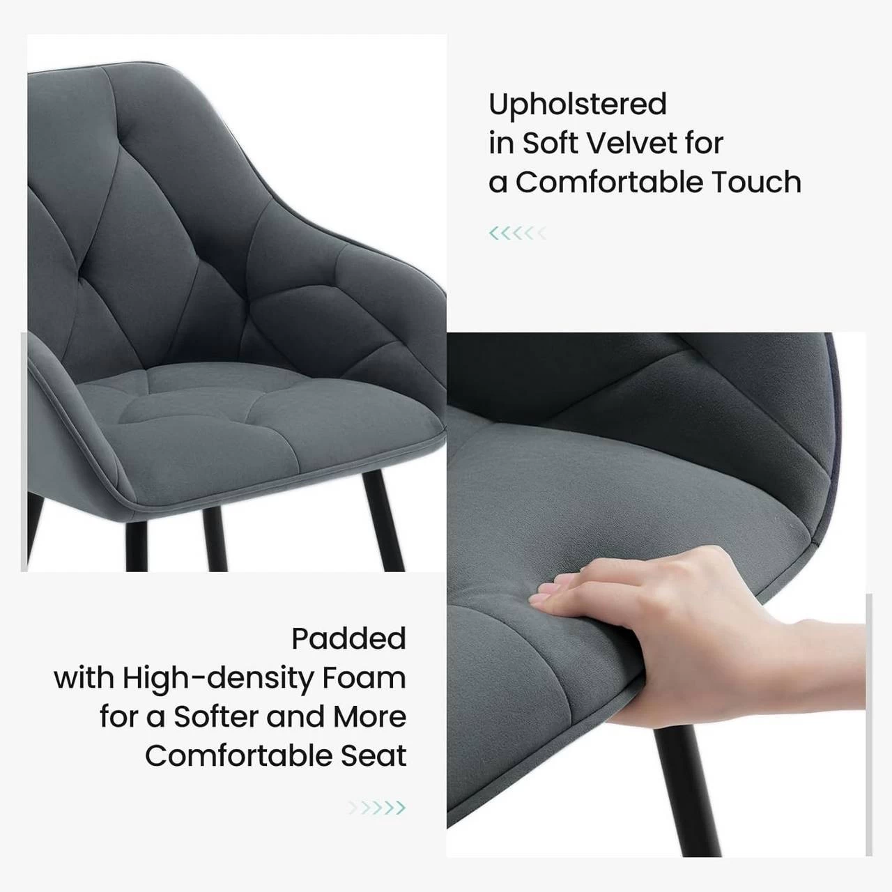 - WEICH & BEQUEM: Der Essstuhl ist mit seidigem und elegantem Samt bezogen und mit weichem und elastischem Schaumstoff gepolstert, sodass er einen weichen und bequemen Sitz bietet, auf dem Sie bequem mit Ihrer Familie oder Freunden essen können.