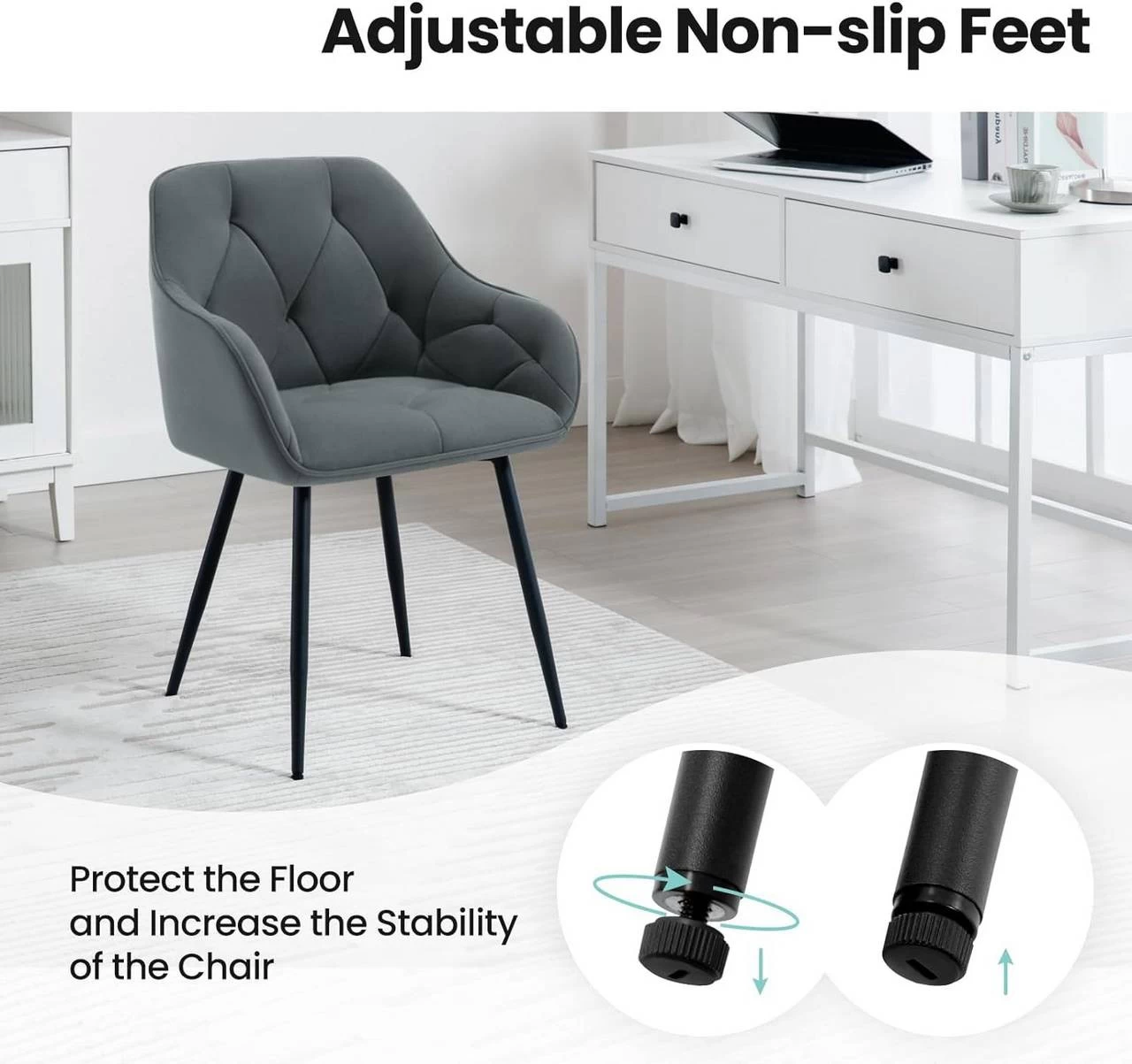 Verstellbare Fußpolster: Die Fußpads schützen Ihren Boden vor Kratzern und den Stuhl mit Armlehne vor dem Verrutschen, sind auch an unebene Böden anpassbar.