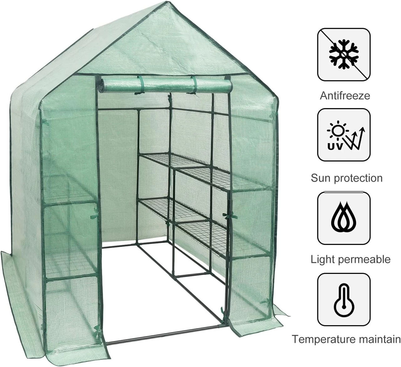 - Umfangreiche Einsatzmöglichkeiten: Das Treibhaus kann das ganze Jahr über genutzt werden. Es kann im Hof, auf der Terrasse oder im Garten als Unterstand für kälteempfindliche Pflanzen oder als Tomatenhaus für ähnliche Gemüse aufgestellt werden. Für Gartenliebhaber ist unser Gewächshaus ein fähiger Helfer bei der Gartenarbeit